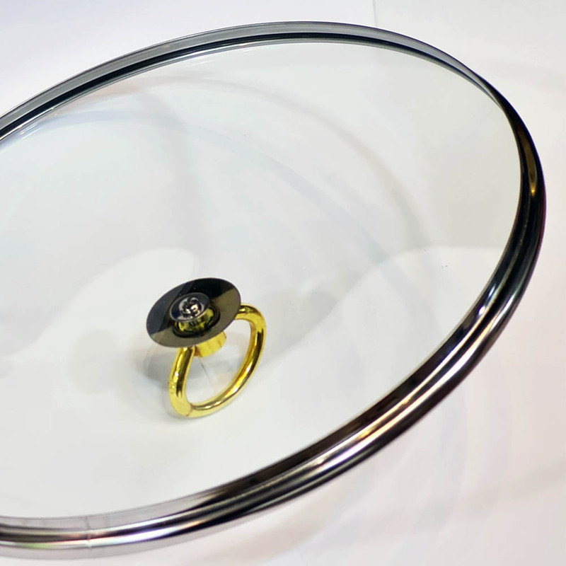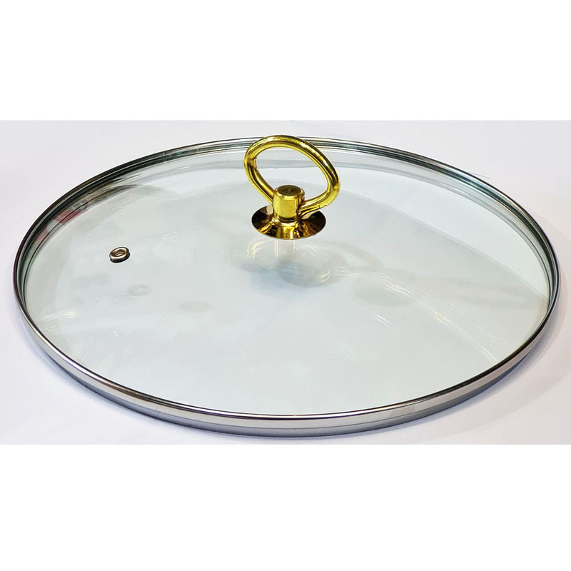 درب در سایز 26 سانتیمتر از جنس پیرکس باکیفیت بوده و دارای دستگیرهء فلزی به رنگ طلایی میباشد که برای انواع ماهیتابه و قابلمه در این سایز قابل استفاده میباشد. بر روی این درب، سوپاپ خروج بخار تعبیه شده است که باعث میشود در هنگام پخت و پز، بخار اضافهء درون ظروف به آسانی به بیرون انتقال یابد. شما میتوانید این درب را برای انواع قابلمه و انواع ماهیتابه با لبه صاف در سایز 26 سانتیمتر، تهیه و استفاده نمایید.