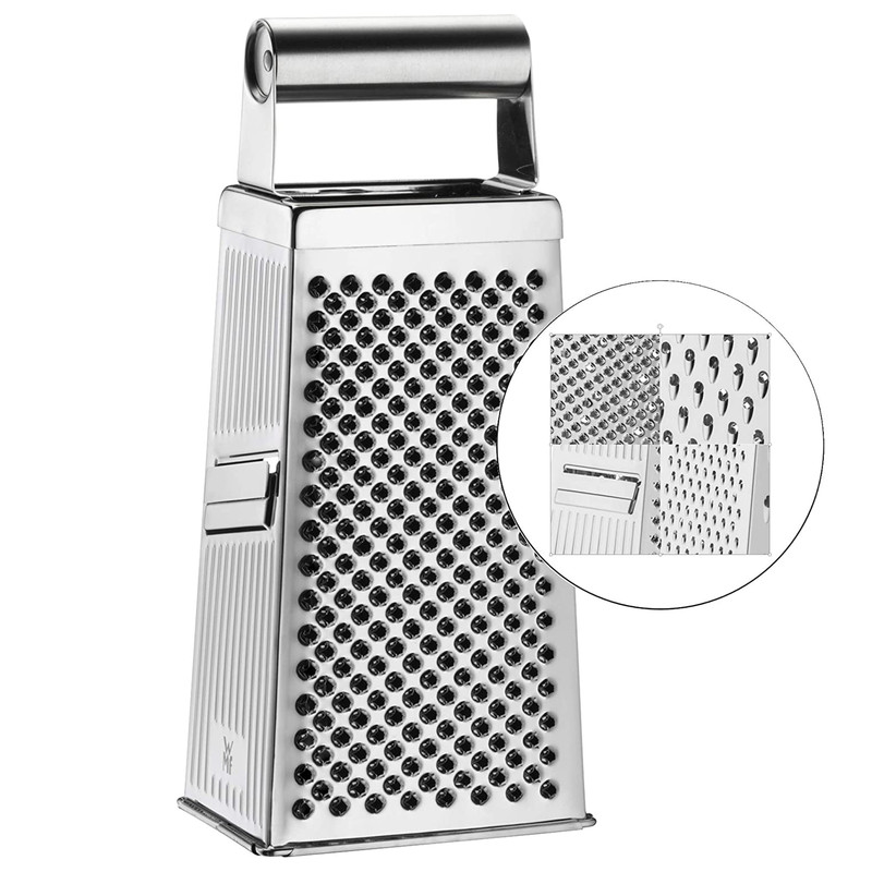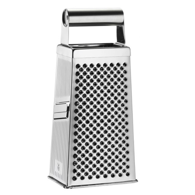 با رنده دبلیو ام اف مدل WMF Grater می توانید میوه ها و سبزیجات را به سرعت و بدون زحمت زیاد صاف و رنده کنید . رنده مربع با چهار سطح مختلف مالش آن می تواند به طور جهانی استفاده شود و ساخته شده از فولاد Cromargan® ضد زنگ است . طرز کار قوی است و تیغه ها حتی با استفاده مکرر برای مدت طولانی فوق العاده تیز می مانند .