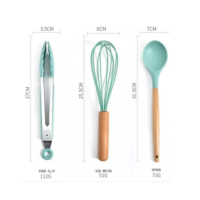سرویس کفگیر Kitchen Set ساخته شده از با کیفیت ترین مواد سیلیکون با استاندارد FDA و بدون BPM ، دسته های چوبی از جنس بامبو و یک ظرف نگهدارنده از جنس پلاستیک میباشد. این سرویس از وزن متعادل و دیزاین منحصر بفردی برخوردار است که باعث میشود در دست گرفتن آن آسان و پخت و پز را راحت می کند. سیلیکون به کار رفته در این محصول ساخته شده از مواد غیر سمی ، بی بو و سازگار با محیط زیست است. این مجموعه وسایل آشپز خانه در برابر درجه حرارت سرما تا 30- و گرما 230+ درجه سانتی گراد مقاومت دارد. انعطاف پذیری ، رویه های نرم از خراشیدن و آسیب رساندن به ظروف شما جلوگیری میکند و همچنین باعث کاهش سر و صدا هنگام آشپزی می شود. این مجموعه متشکل از 11 عدد کفگیر ملاقه و 1 عدد ظرف نگهداره می باشد.