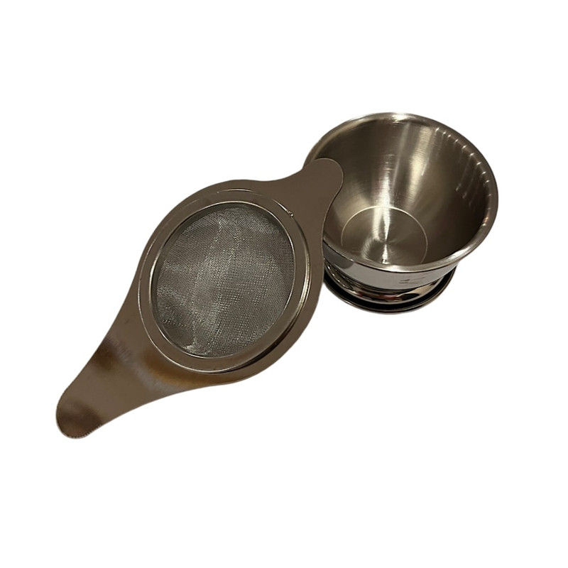 صافی کاسه دار استیل که دو تکه می باشد، دارای دسته است که استفاده از آن را راحت کرده است. این صافی همراه با زیره پایه دار از چکیدن چای جلوگیری می کند. که قابل استفاده در منزل و کافی شاپ می باشد.