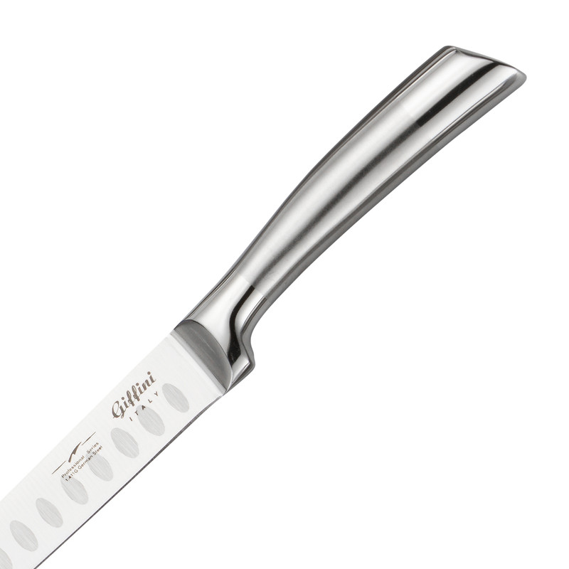 چاقوی آشپزخانه جی فی نی از بهترین و معتبر ترین برندهای جهان میباشد که تمام مراحل طراحی ان در شرکت GIFFINI ایتالیا انجام میشود و برای تولید ان از بهترین و با کیفیت ترین الیاژ جهان استفاده شده که در کار کردن با این چاقو شما ان را کاملا حس کرده و لذت آشپزی را برای شما چند برابر خواهد کرد و بدلیل طراحی دسته و بدنه یک تکه این چاقو هرگز دسته ان جدا نخواهد شد و شما را سالیان سال از خرید مجددا ان بی نیاز خواهد کرد