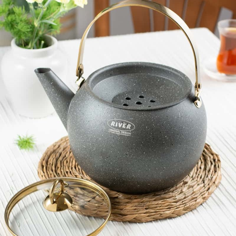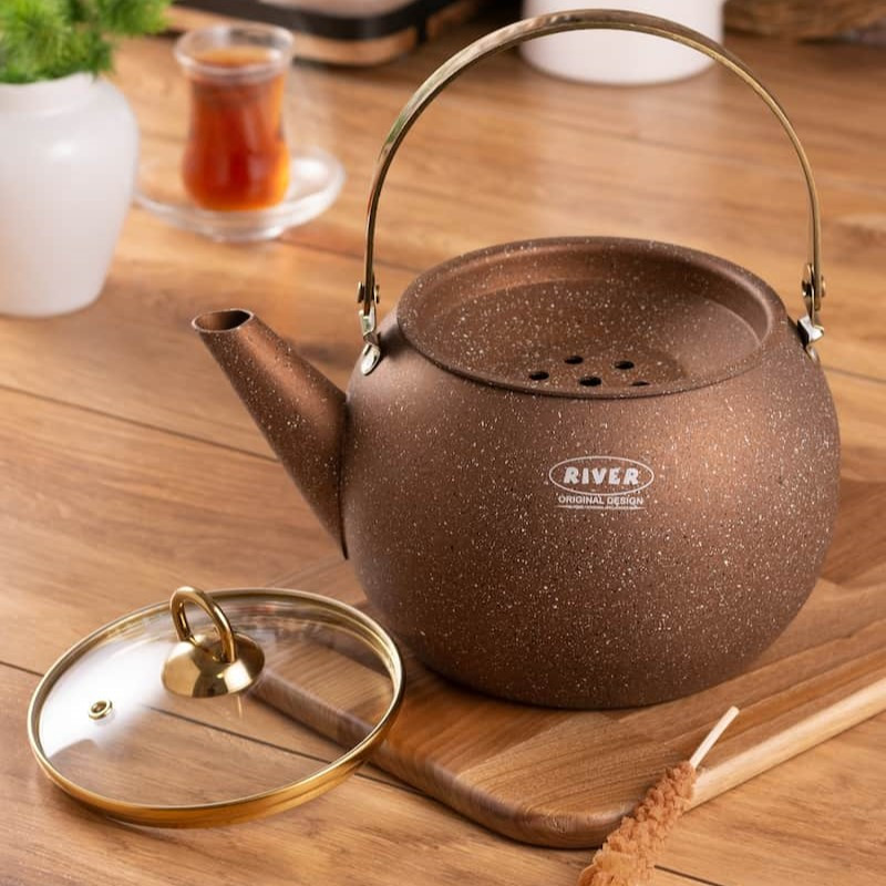 بدنه آلومینیومی با پوشش گرانیت تفلون , دارای درب پیرکس با حاشیه فلز استیل آبکاری شده , دسته و قپه کتری استیل ترک , ضدرسوب بخاطر تفلون گرانیت بودن داخل و بیرون کتری , گنجایش کتری 2/8لیتر