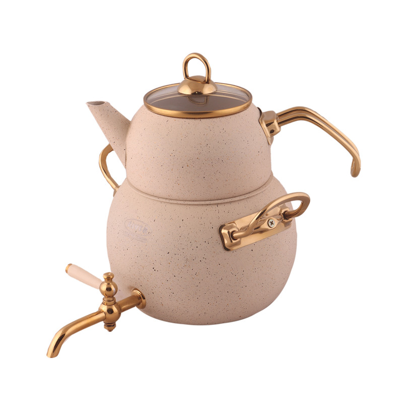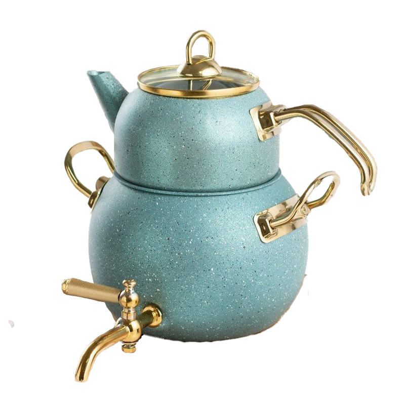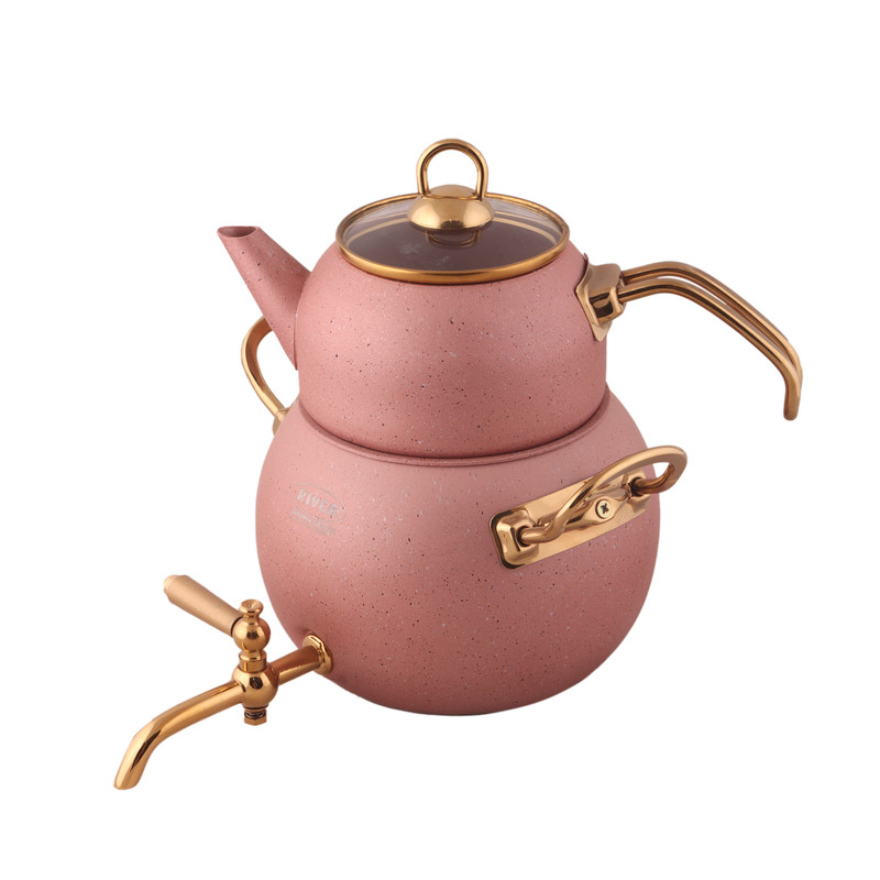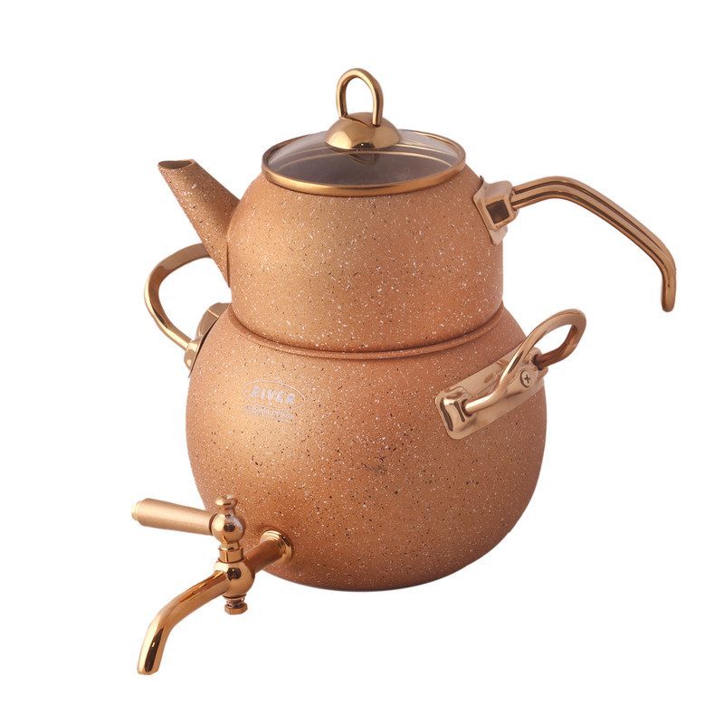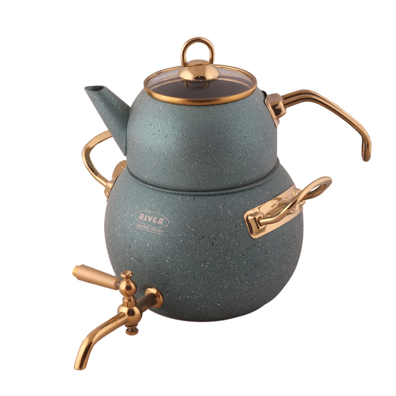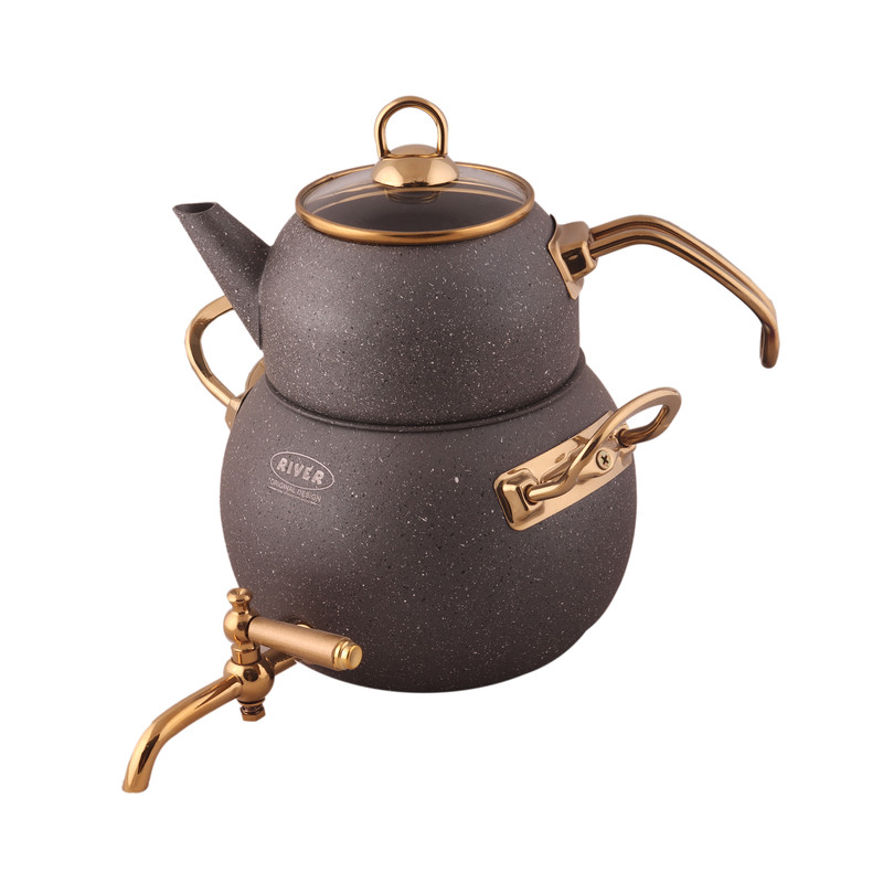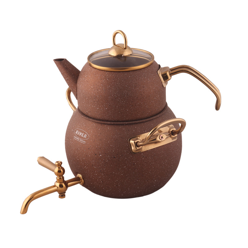 کتری قوری برند ریور ساخت ایران،این کتری قوری از جنس آلمینیوم با روکش گرانیت می باشد.یکی از مزیت های این کتری قوری این است که هم داخل هم بیرون دارای روکش گرانیت هست.روکش گرانیت این کتری قوری هم باعث زیباتر شدن این محصول در اشپزخانه شما می شود هم از لحاظ دم کشیدن چایی می تواند طعم و رنگ و بویه بهتری برای شما داشته باشد.المینیوم می تواند حرارت را به صورت یک نواخت در همه جایه کتری و قوری پخش کند و این موضوع باعث بهتر دم کشیدن چایی شما می شود.بسته بندی شکیل و زیبایه این کتری قوری باعث شده گزینه مناسبی برای هدیه دادن به عزیزان شما باشد.