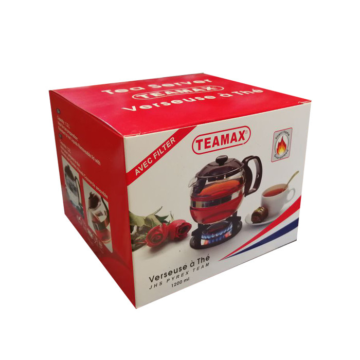 قوری عضوی جدا نشدنی از هر آشپزخانه است.قوری teamax دارای حجم 1200 میلی لیتر و شیشه ی پیرکس ساخت اروپا بسیار باکیفیت(شفاف) و شعله مستقیم است که مناسب کتری٬چایساز٬سماور و غیره میباشد.در جلوی در محصول فیلتر برای جلوگیری از عبور تفاله ها وجود دارد. قطر قسمت بر آمده ی کف (قسمتی که روی صفحه چایساز)قرار میگیرد 9.5 سانتی متر٬ارتفاع شیشه ی قوری حدود 10.5 سانتی متر است و قطر دهانه قوری 11 سانتی متر است.در و دسته ساخته شده از پلاستیک با کیفیت بهداشتی است.