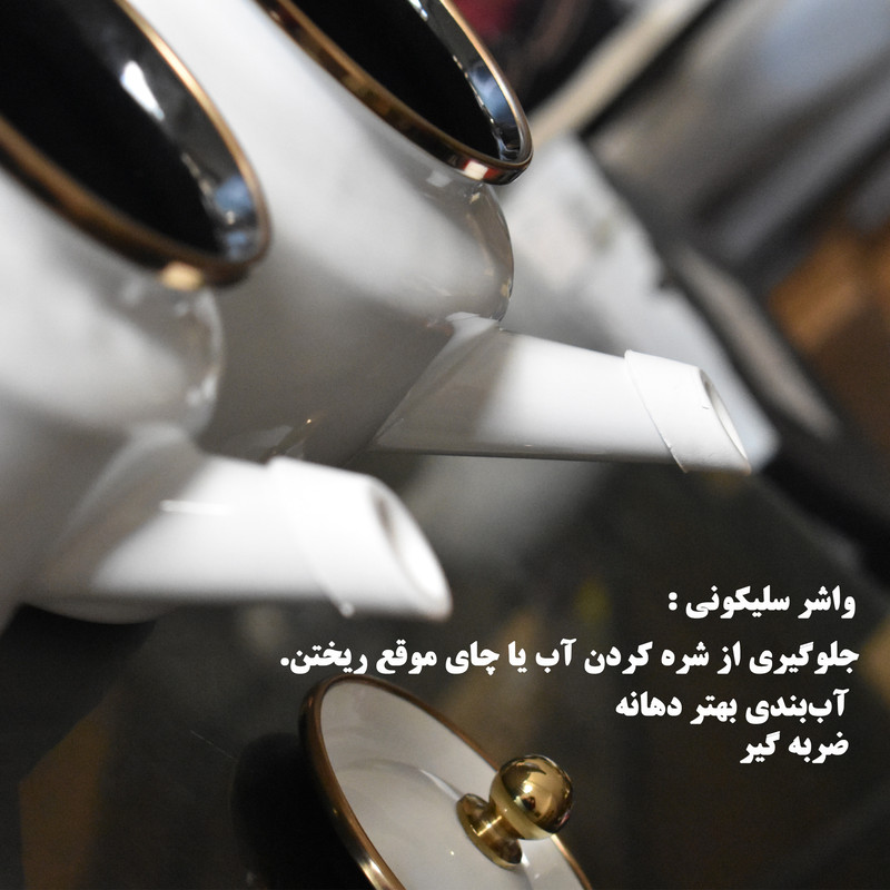 دارای واشر سیلیکونی برای جلوگیری از شره کردن آب یا چای موقع ریختن. آببندی بهتر دهانه، ضربه گیری