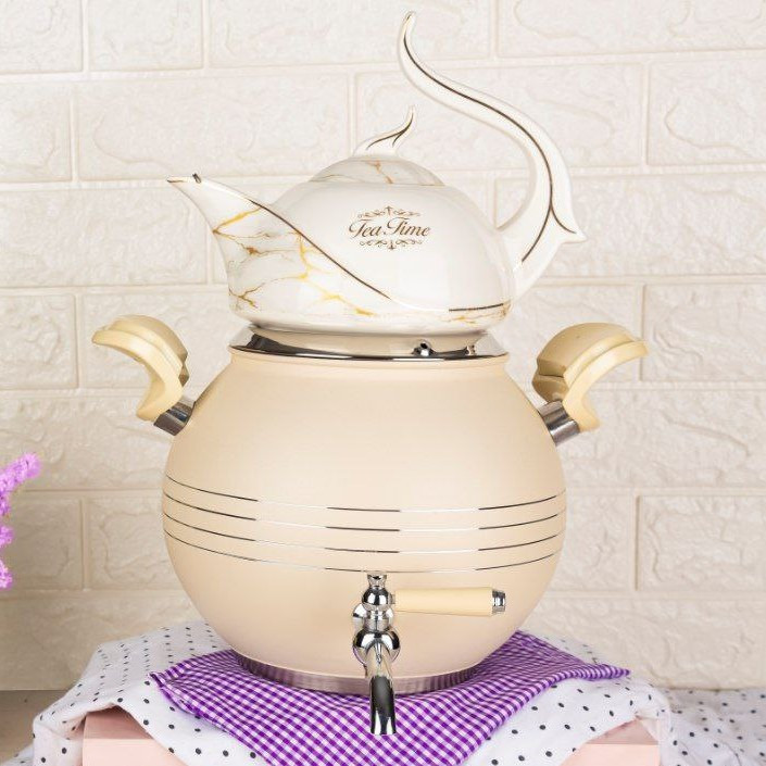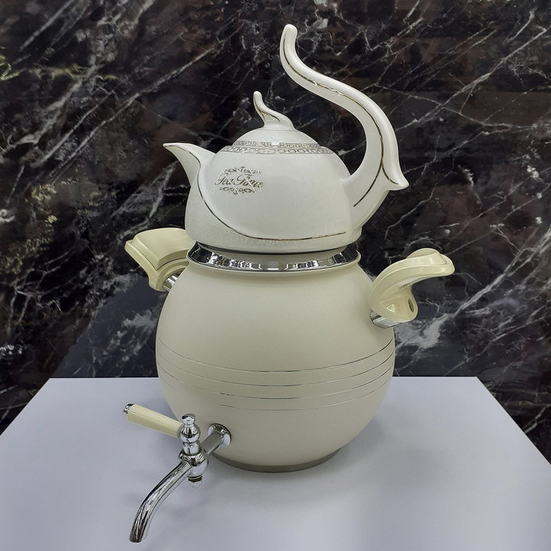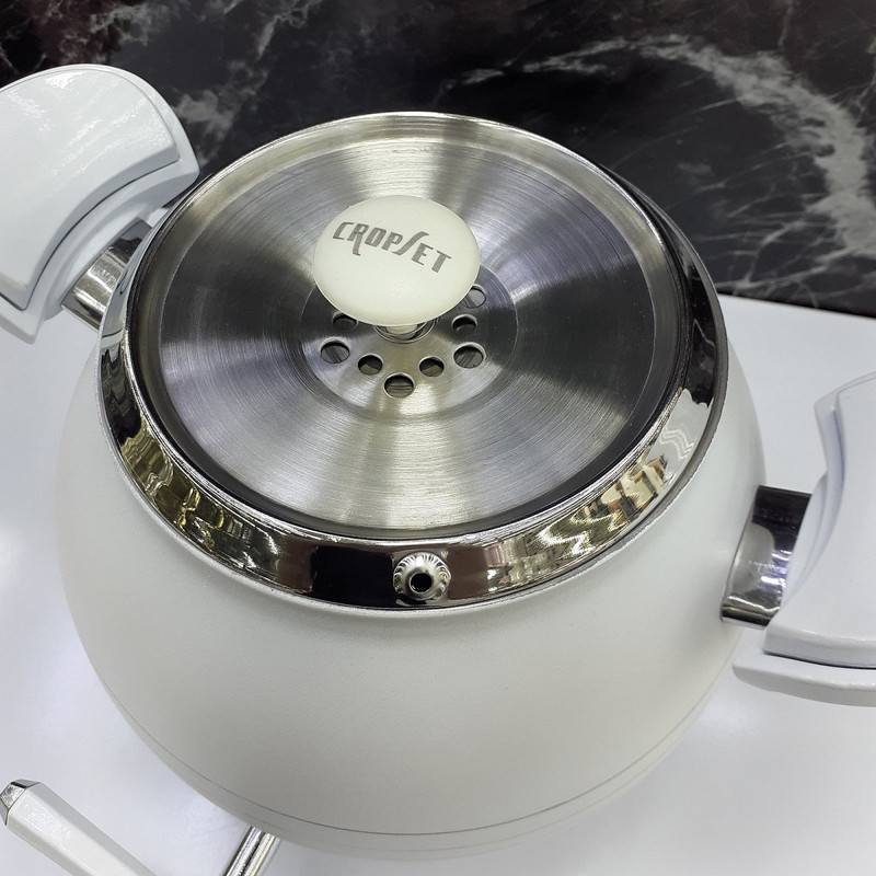 مجموعه کروپ ست این بار برای تامین سلایق مشتریانش دست به ابتکاری جدید زده و کتری های استیل تولیدی خود را در رنگ های متنوعی به بازار عرضه کرده است تا در راستای مشتری مداری و رقابت با دیگر محصولات داخلی و خارجی همچنان یک گام از همه جلوتر باشد. کتری استیل رنگی کروپ ست ساخته شده از استیل ضد زنگ با گرید 304 و ضخامت بدنه 1 میلیمتری می باشد و با طراحی منحصر بفردی که دارد گزینه ای ایدهآل برای آشپزخانه شماست. از مزیت های این محصول دارا بودن قوری بر روی کتری بدلیل طراحی هوشمندانه درب کتری است. همچنین با تعبیه سوپاپ بخار بر روی درب کتری از هدر رفت بخار آب جلوگیری کرده که باعث افزایش بهرهوری انتقال حرارت به قوری می شود. این محصول دارای دستههایی از جنس باکالیت مقاوم به حرارت است. جنس قوری این سرویس، چینی باکیفیت است که طعم چای دلنشینی را برای شما به ارمغان خواهد آورد. از ویژگی های دیگر این محصول می توان به ست بودن رنگ کتری و قوری آن اشاره کرد که می تواند نقش بسزایی در زیبایی نمای آشپزخانه شما داشته باشد. برای انتخاب درست فقط کافیست حضور این کالا را در آشپزخانه خود تجسم کنید. و اما ویژگی بارز کتری های کروپ ست استیل 304 و ضخامت 1 میلمتری آن می باشد که باعث شده مجموعه کروپ ست محصولات رو گازی خود را برای مصرف کننده تا یک سال تضمین کند و این یک سورپرایز به حساب می آید. این حس خوب را میهمان «کروپ ست» باشید.