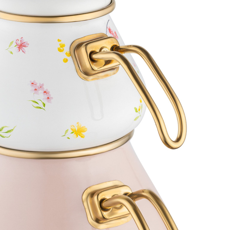 با این سرویس کتری و قوری، به زمان صرف چای خود جلوهای خاص ببخشید. این سرویس کتری و قوری با ظاهر و طراحی چشمنواز و براق خود، مهمانان شما را خوشحال خواهد کرد و دستههای ارگونومیک آن، استفاده راحت را تضمین میکند.