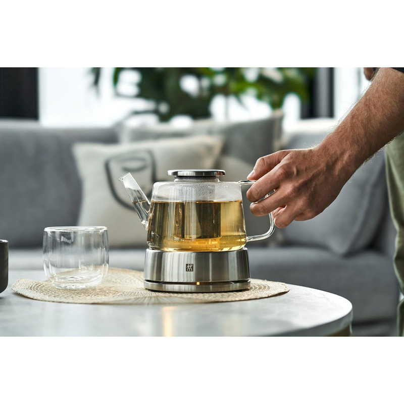 قوری شیک از سری SORRENTO توسط ZWILLING به صورت نفیس برای چای و دمنوش طراحی شده است. از آنجایی که بسیاری از انواع چای تنها زمانی که در دمای 80 تا 100 درجه سانتی گراد دم می شوند، عطر کامل برگ های چای، گیاهان و ادویه ها را ایجاد می کنند، می توان از قوری برای این دماها بدون هیچ مشکلی استفاده کرد. هم گرمکن قوری و هم درب و صافی چای از فولاد ضد زنگ 18/10 با کیفیت بالا ساخته شده اند. پوشش سیلیکونی درب این چای را تضمین می کند که چای به خوبی پوشانده می شود، می تواند در آرامش خیس بخورد و عطر کامل آن را ایجاد کند.
