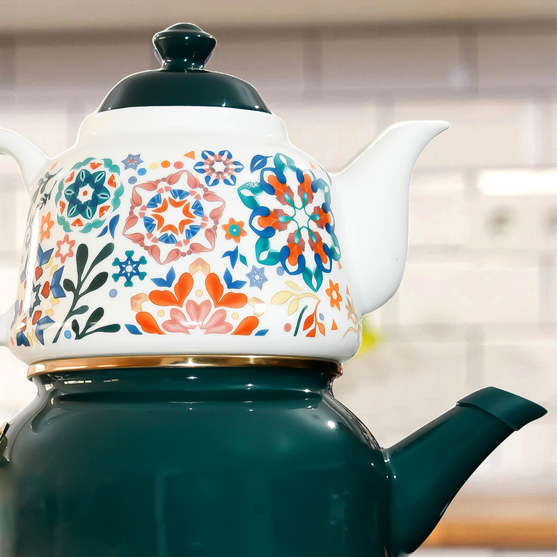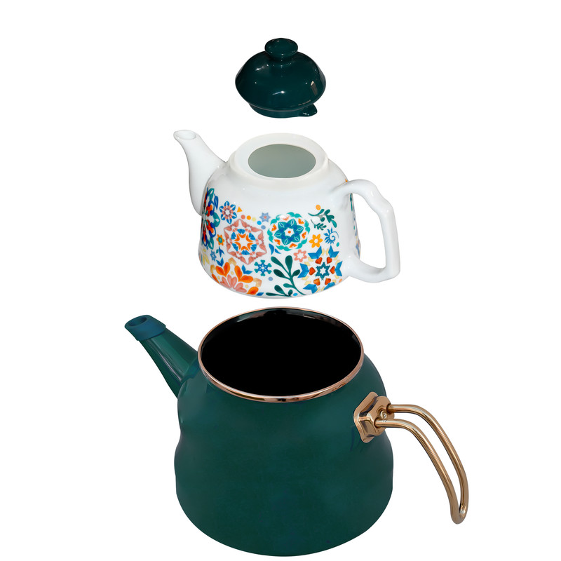 محصول کشور ترکیه - جنس کتری از لعاب و جنس قوری چینی میباشد