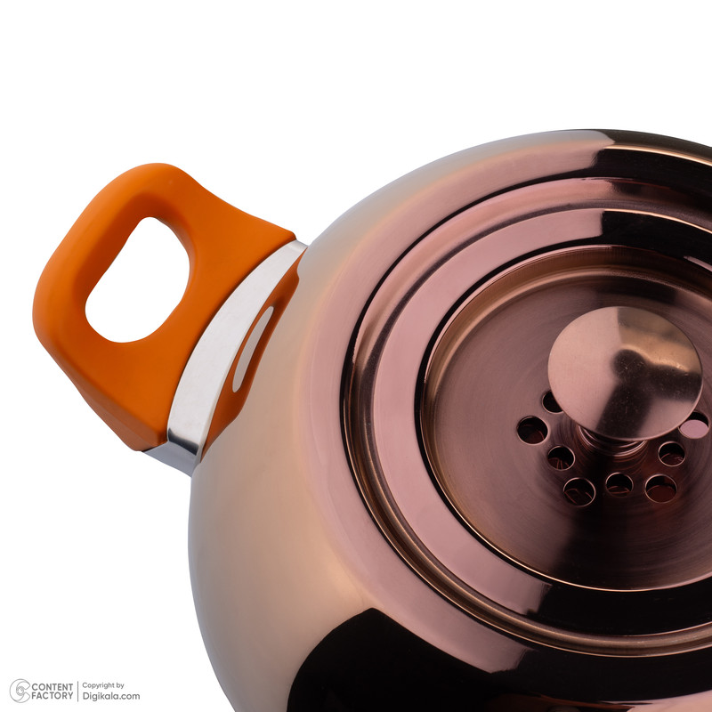 کتری رو گازی با قوری چینی با کیفیت، دارای ظرفیت 4 لیتر می باشد. دارای کفی ساده و کفی دوجداره می باشد. سطح با کیفیت با استفاده از آبکاری PVD. کف کتری از جنس استیل مقاوم می باشد. در برابر حرارت, رطوبت, خط و خش و سایش و خوردگی مقاومت بسیار بالا دارد.