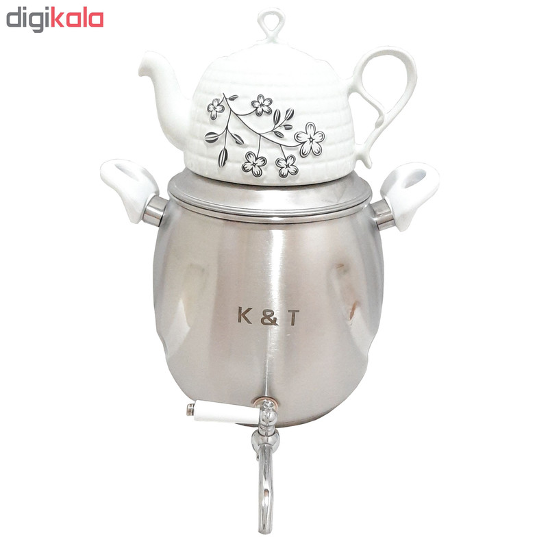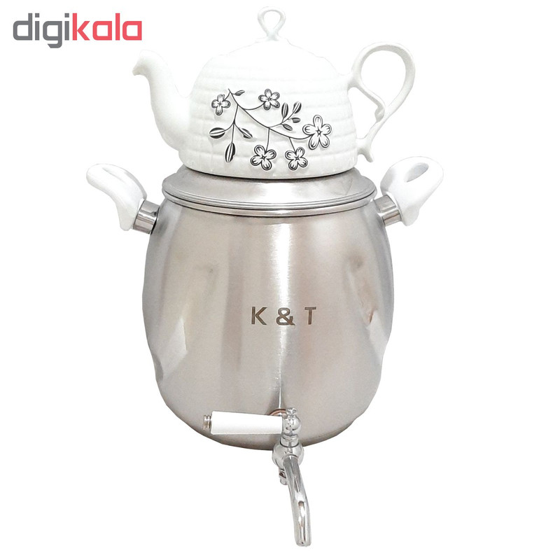 ست کتری و قوری کی اند تی جدید از بهترین برندهای کتری و قوری است.کفه ی ضخیم دایکاست که در این کتری به کار رفته باعث میشود حرارت به طور یکنواخت در کل کفه تقسیم شود و از سوختن کتری جلوگیری کند.شیر بلند این امکان را میدهد که بر روی هر اجاقی قابل استفاده شود.درپوش فنری و دسته های باکالیت از دیگر مزایای آن است. طراحی بسیار زیبا در کنار کیفیت بالا شاخصه ی کتری های کی اند تی است که آن را باب میل سخت پسندان میکند.