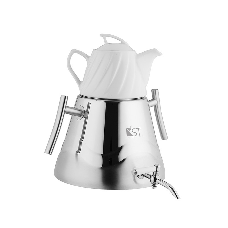 ست کتری و قوری شیردار مدل هرمی دسته استیل KST از بهترین برندهای کتری و قوری است.کفه ی ضخیم دایکاست که در این کتری به کار رفته باعث میشود حرارت به طور یکنواخت در کل کفه تقسیم شود و از سوختن کتری جلوگیری کند.شیر بلند این امکان را میدهد که بر روی هر اجاقی قابل استفاده شود.درپوش فنری و دسته های استیل از دیگر مزایای آن است. طراحی بسیار زیبا در کنار کیفیت بالا شاخصه ی کتری های کی اس تی است که آن را باب میل سخت پسندان میکند.