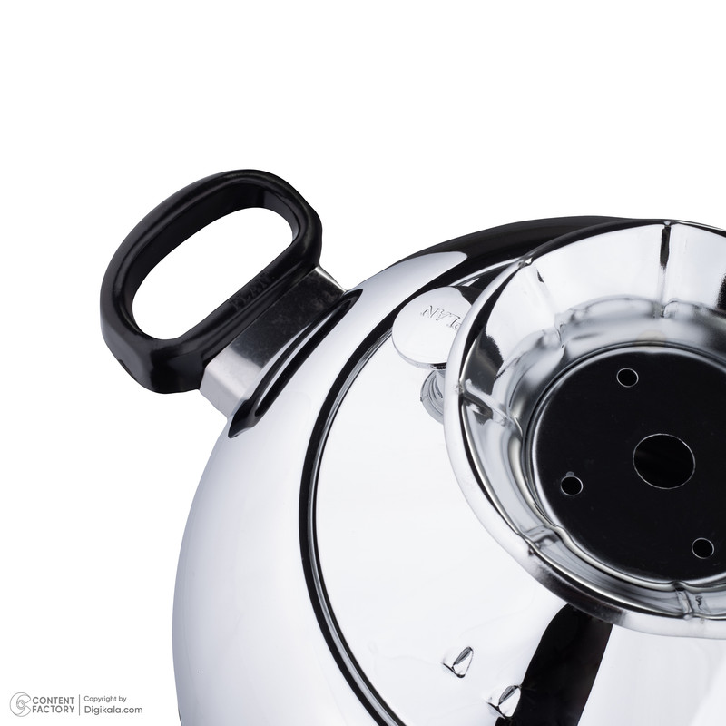 سماور رو گازی با کیفیت، آبکاری نیکل کُرم و دارای ظرفیت 6 لیتر می باشد. دارای کفی ساده و کفی دوجداره می باشد.کف کتری از جنس استیل مقاوم می باشد. در برابر حرارت, رطوبت, خط و خش و سایش و خوردگی مقاومت بسیار بالا دارد. دارای شیر بلند جهت استفاده آسان بر روی اجاق گاز است.