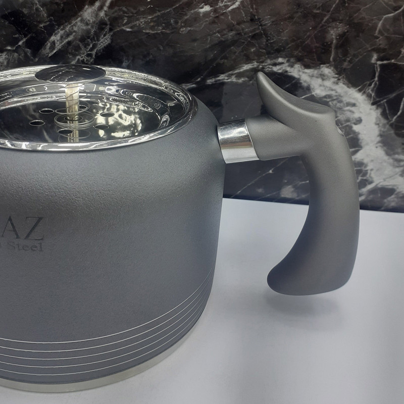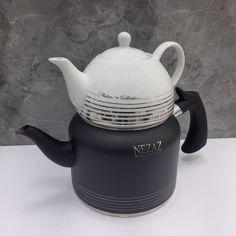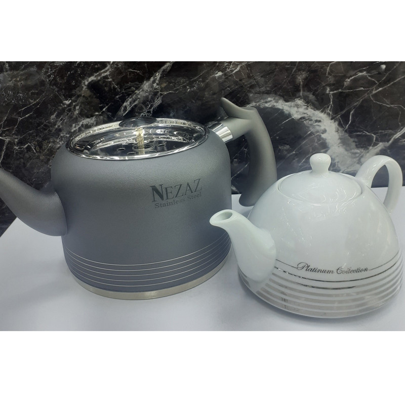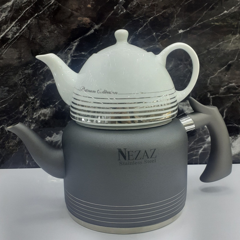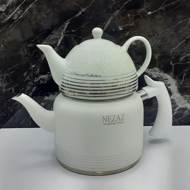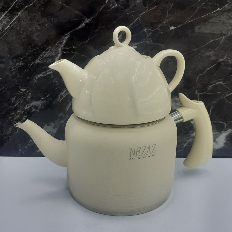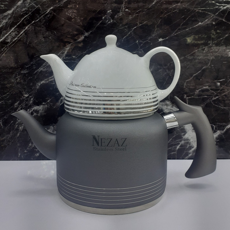شرکت نزاز برای تولید این کتری از ورق استیل ضد زنگ با نیکل 304 با ضخامت 1 میلی متر و کفه ی چدنی چندلایه استفاده می کند که این کتری را در برابر زنگ زدگی و دماهای بسیار بالا محافظت می کند.