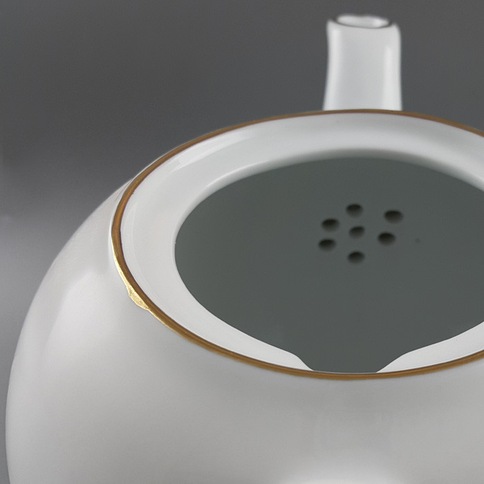 قوری لب طلا چینی تقدیس سایز 8 کوپ دارای لبه طلاکاری شده دارای قطر کفه 8.5 سانتیمتر طول با احتساب دسته 21 سانتیمتر و ارتفاع 15 سانتیمتر غیر قابل استفاده در ماشین ظرفشویی و مایکروفر