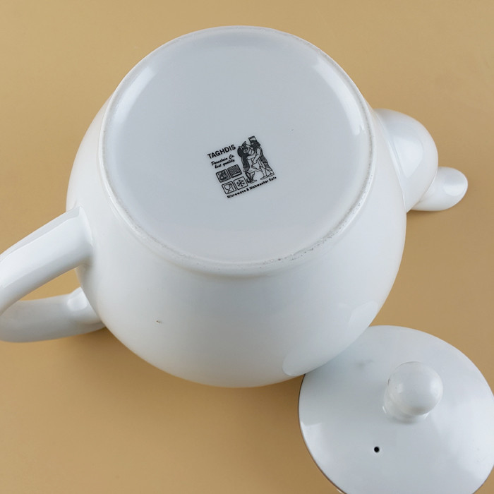 قوری لب طلا چینی تقدیس سایز 6 کوپ دارای لبه طلاکاری شده دارای قطر کفه 8 سانتیمتر طول با احتساب دسته 21 سانتیمتر و ارتفاع 15 سانتیمتر غیر قابل استفاده در ماشین ظرفشویی و مایکروفر - دارای فیلتر داخلی بر روی بدنه قوری