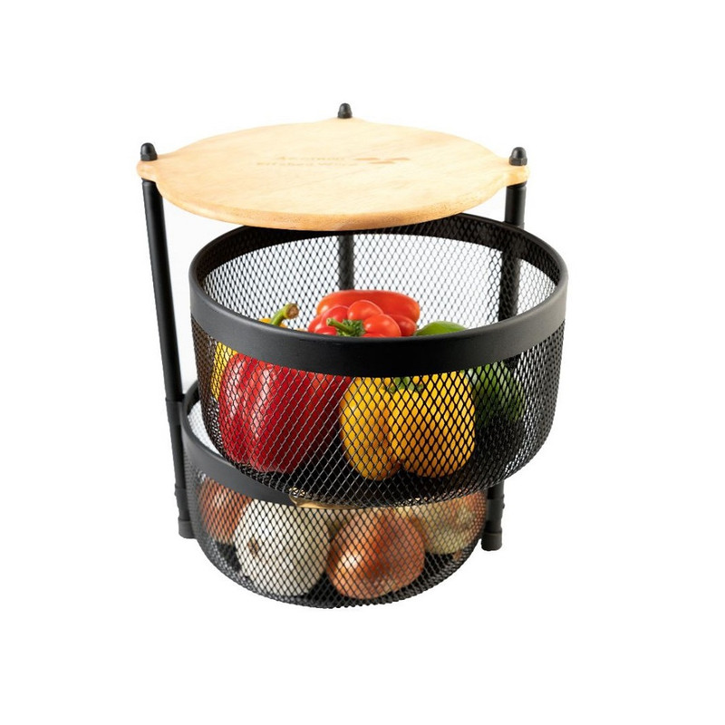 سبد سیب زمینی پیاز توری چوبی متحرک 2 طبقه آسمان به دلیل حالت کشویی ، بسیار کم جا بوده و مناسب آشپزخانه با اندازه های مختلف می باشد.متشکل از 2 سبد گرد و گنجایش وزن حداکثر 4 کیلوگرم را داراست. بالای محصول برای استفاده بهینه فضا قسمتی با جنس چوبی قرار گرفته که کاربرد و زیبایی بسیار زیادی دارد. در مجموع ارتفاع جا پیازی 42 سانتیمتر است که علاوه بر اشغال فضای کمتر، در اکثر آشپزخانهها و تراسها قابلاستفاده باشد.