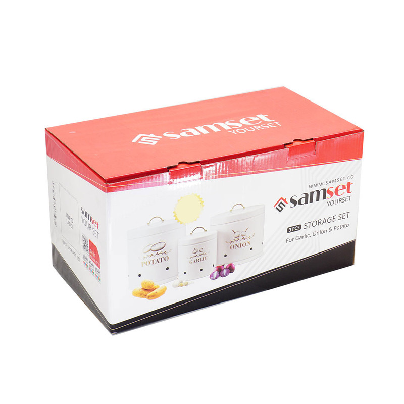 بانکه سیبزمینی، پیاز و سیر در سه سایز مختلف، یک انتخاب ایدهآل برای نگهداری بهداشتی و منظم مواد غذایی در آشپزخانه است. این ست فلزی مقاوم، با طراحی مدرن و رنگبندی متنوع، جلوهای شیک به فضای آشپزی شما میبخشد. وجود دریچه هوا در بدنه، به تهویه مناسب و ماندگاری بیشتر سیبزمینی، پیاز و سیر کمک میکند.