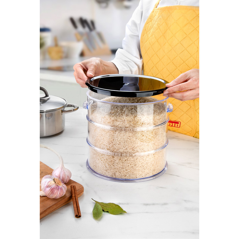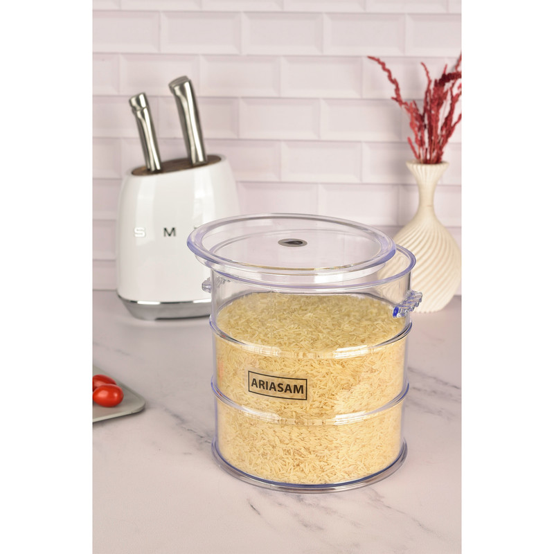 بانکه آریاسام کد 250 با گنجایش 5 لیتر جهت نگهداری مواد غذایی همچون برنج و قند و شکر و سایر مواد خوراکی قابل استفاده می باشد و همچنین در مقایسه با دیگر قوطی های نگهدارنده از حجم بیشتری برخوردار است. حجم این بانکه 5 لیتر می باشد.