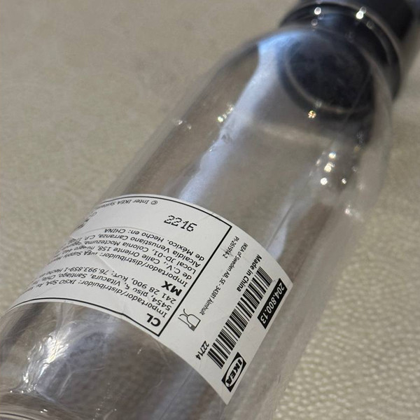 بطری به نظر می رسد که از شیشه ساخته شده است، اما از پلاستیک بادوام ساخته شده است که می تواند در برابر استفاده و سایش روزانه مقاومت کند. آویز درپوش حمل بطری را آسان می کند.