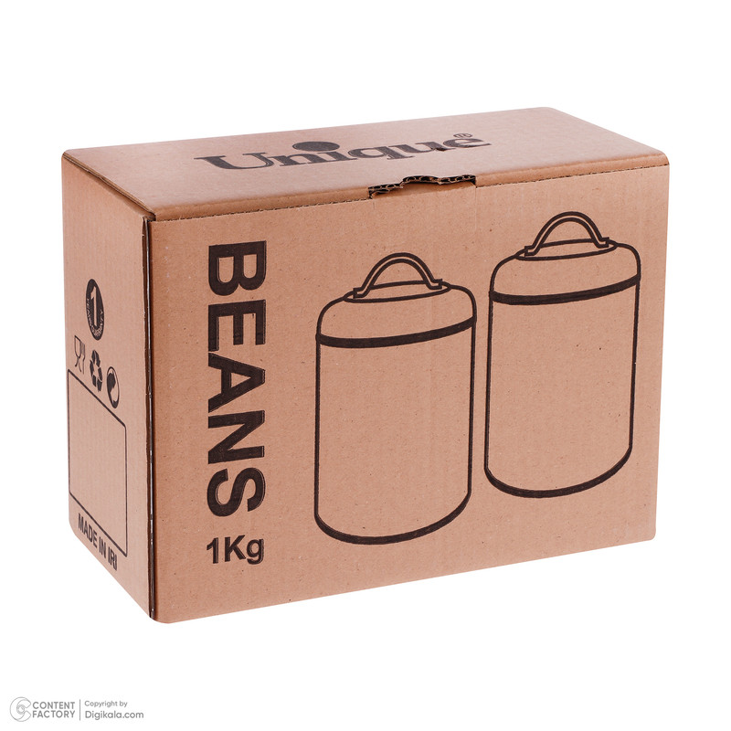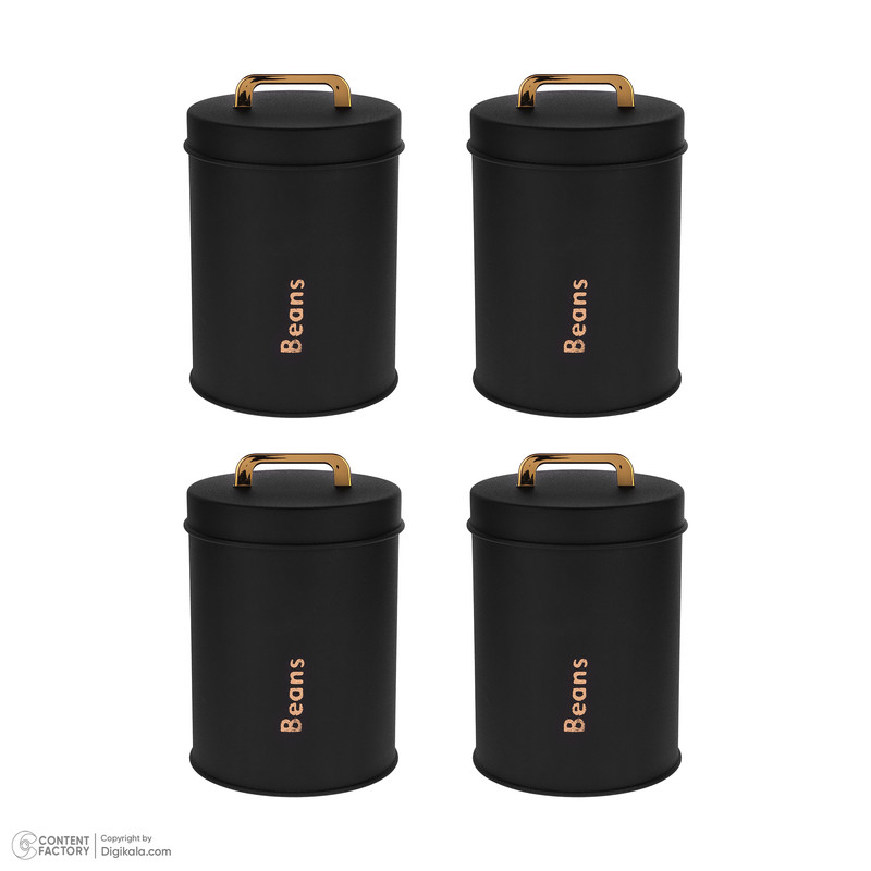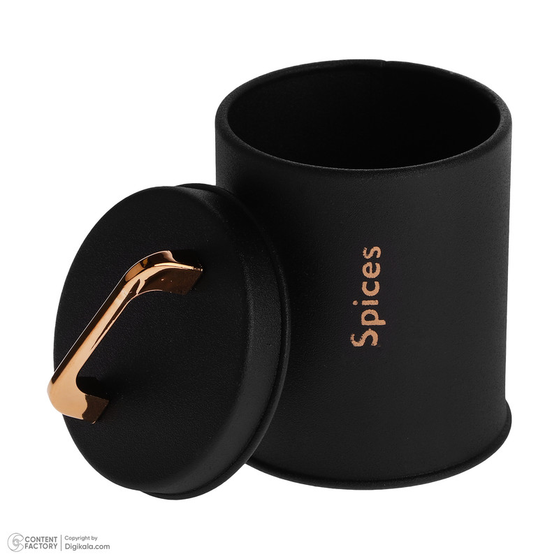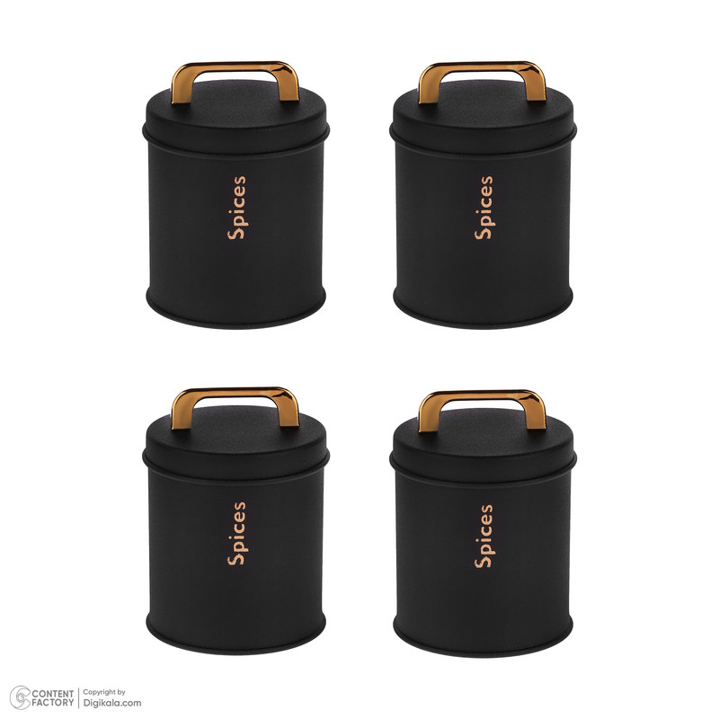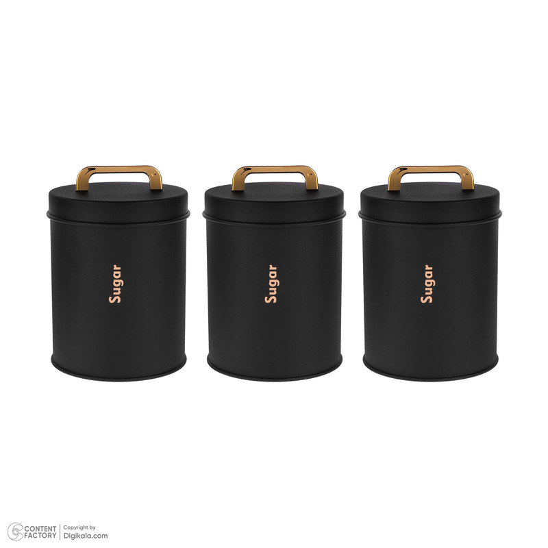 1 عدد سطل زباله - 1 عدد ظرف شکر - 1 عدد ظرف برنج - 4 عدد بانکه - 4 عدد جا ادویه ای به همراه 1 عدد استند