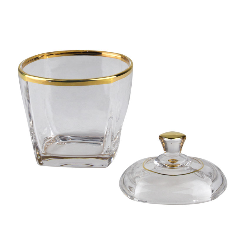 قندان بلینک مکس مدل لب طلا - کالای وارداتی با کیفیت عالی دارای بلور کاملا شفاف - مناسب برای سرو قند ، شکلات ، آبنات و ... - ارتفاع با درب 12 و طول هر ضلع 9 سانتیمتر - ساخت چین