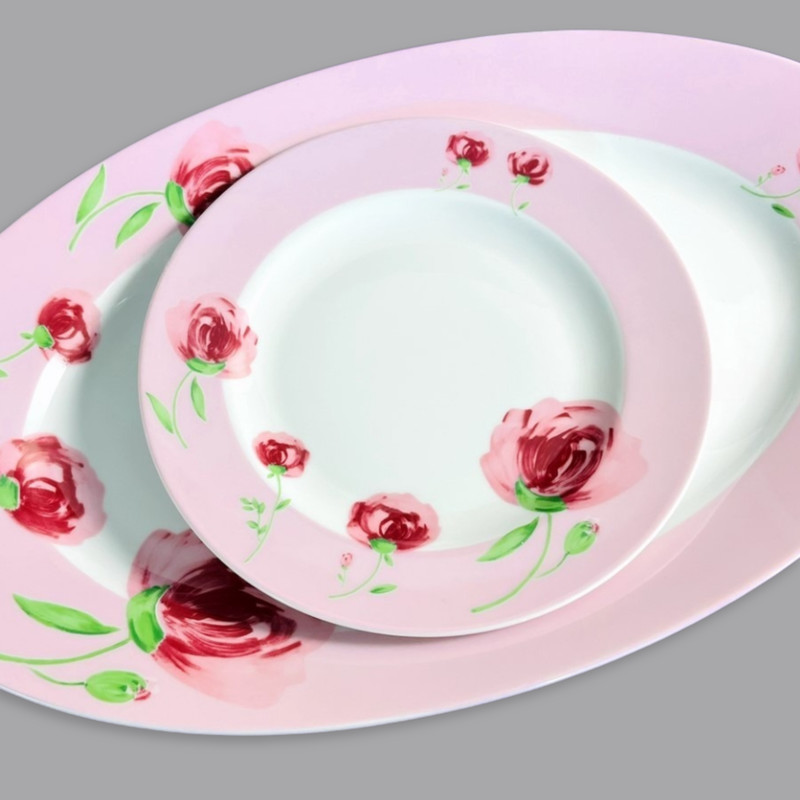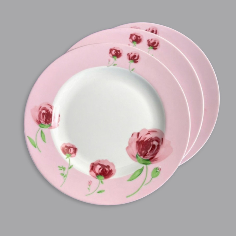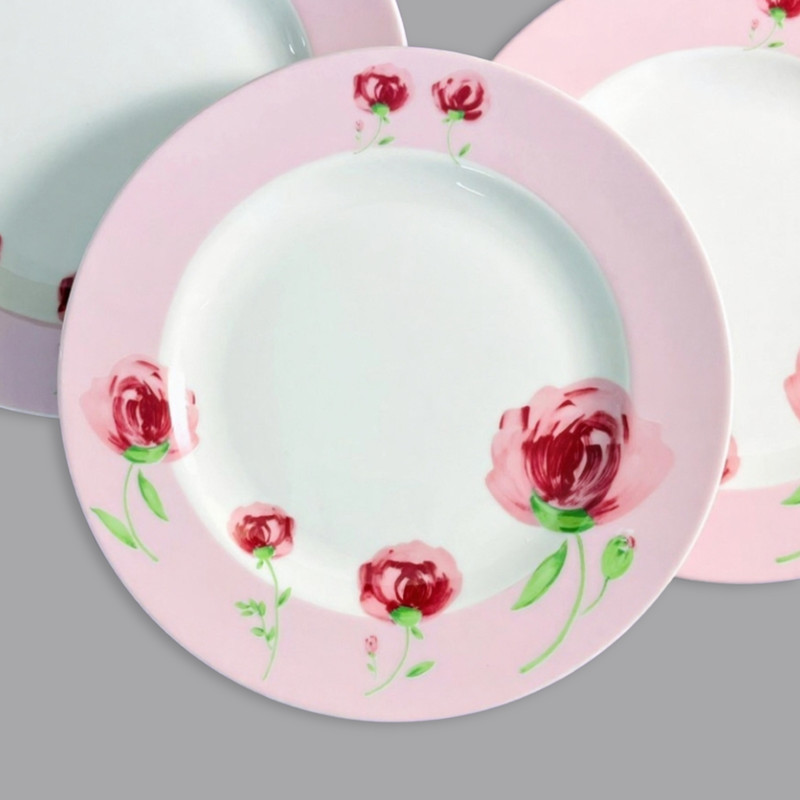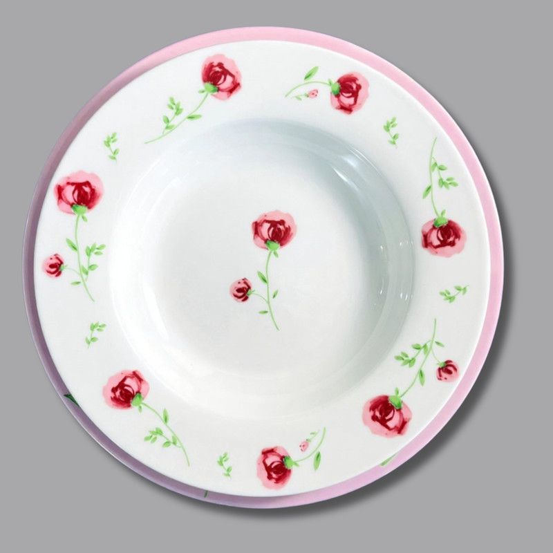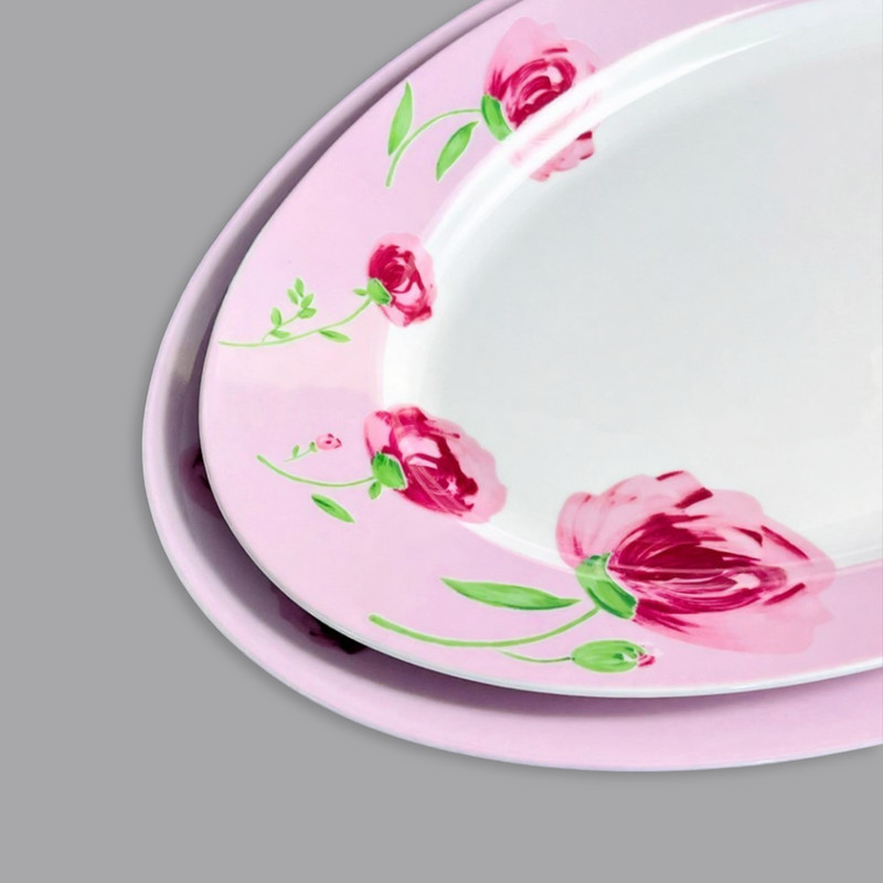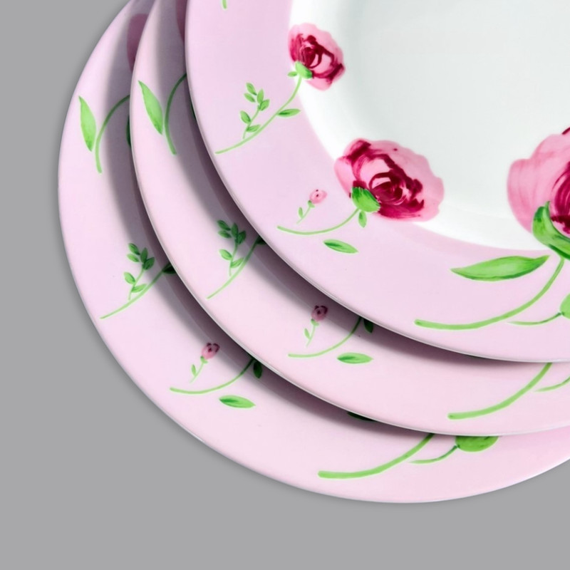 فرم دایرهای کلاسیک ظروف، در کنار طرح گل رز صورتی با ترکیب رنگی آرام و هماهنگ، فضایی گرم و لطیف برای میز غذا ایجاد میکند. این مجموعه سازگار با مایکروویو و ماشینظرفشویی است و امکان شستوشو با دست یا ماشینظرفشویی را بدون افت درخشندگی دارد.