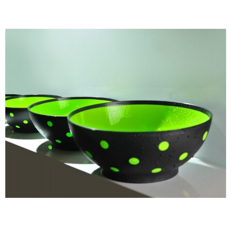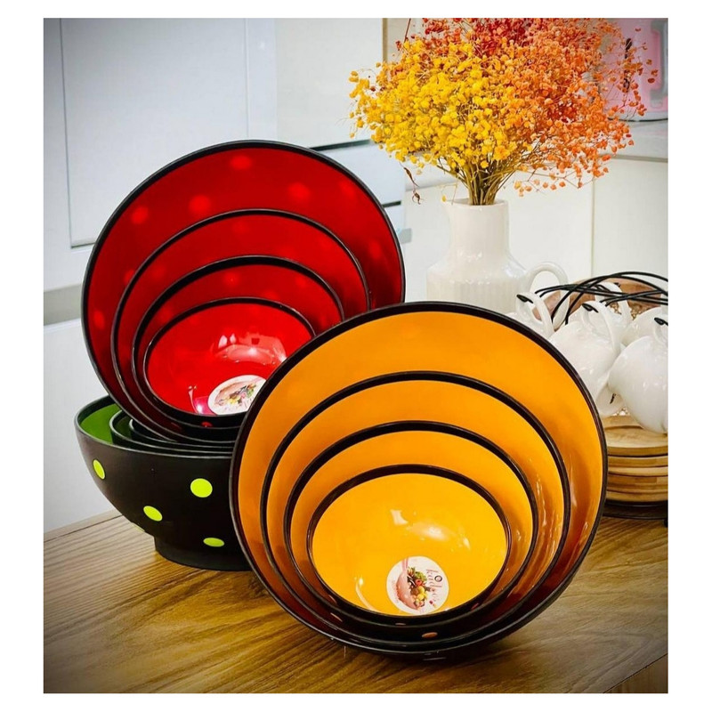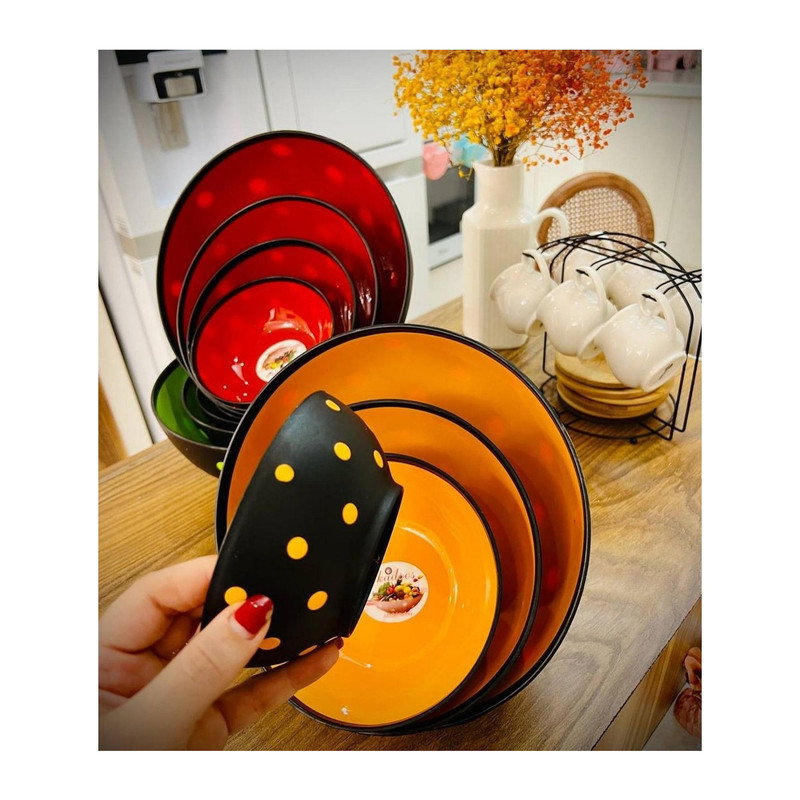 مجموعه چهار عددی کاسه های دو جداره طرح خالدار در گنجایش های 3 و 1.5 و0.75و 0.35 لیتری مقاوم در برابر یخ زدگی و امواج ماکروویو و انواع شوینده ها در ماشین ظرفشویی می باشند.