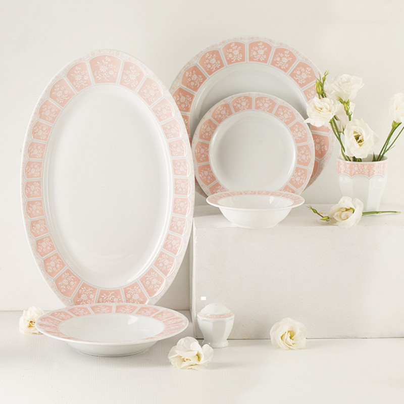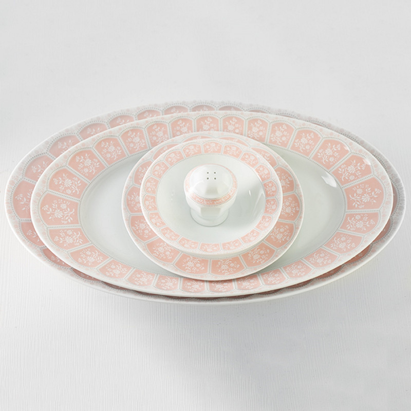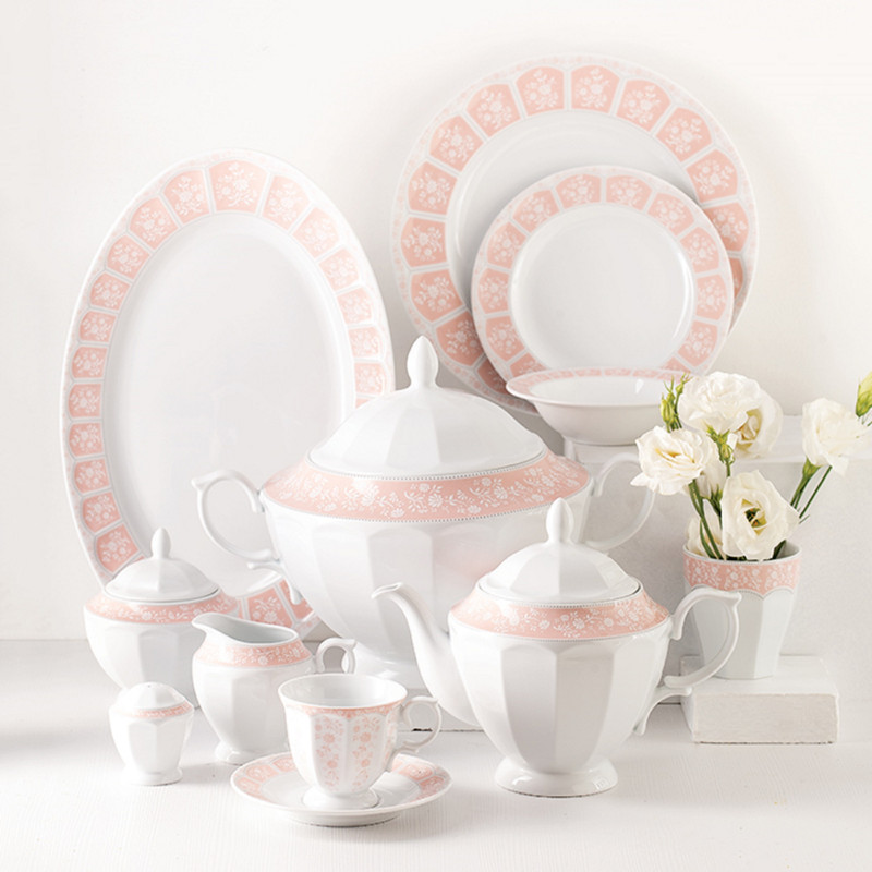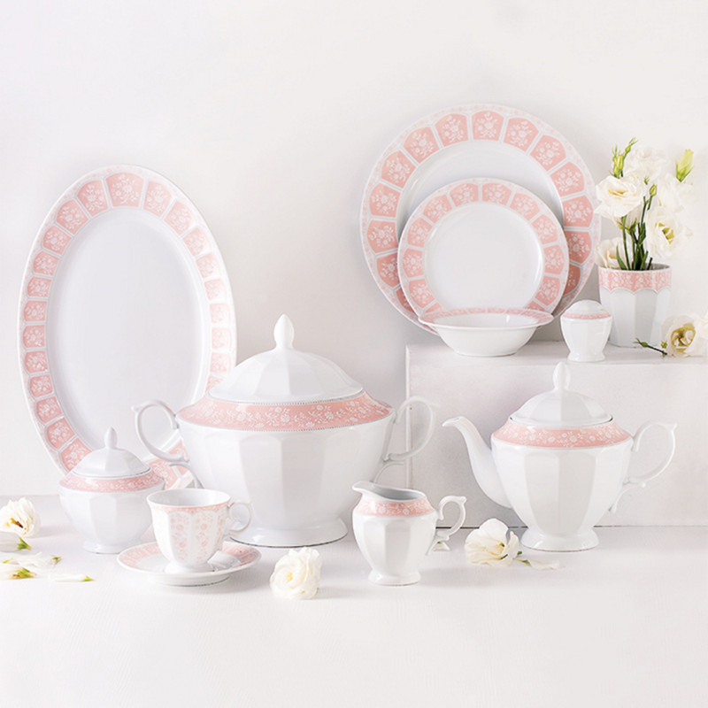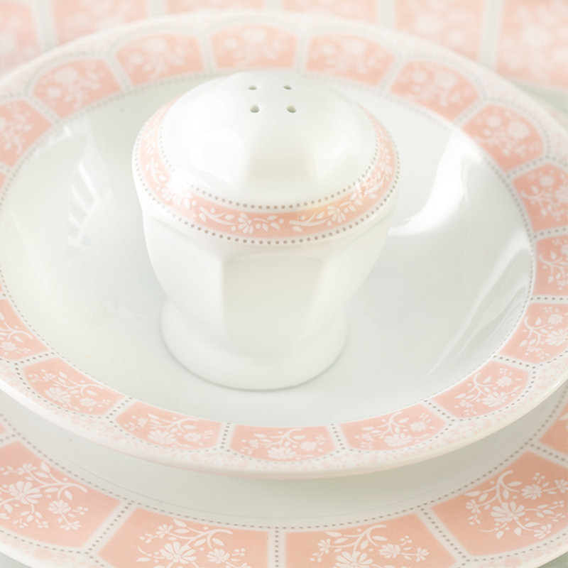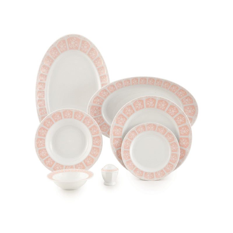 سوپخوری , کاسه , ظرف سالاد , دیس , بشقاب غذاخوری , بشقاب خورشخوری , پیشدستی , قوری چایخوری , فنجان , نعلبکی , قندان , شکرریز , نمکپاش و فلفلپاش , پیاله , لیوان