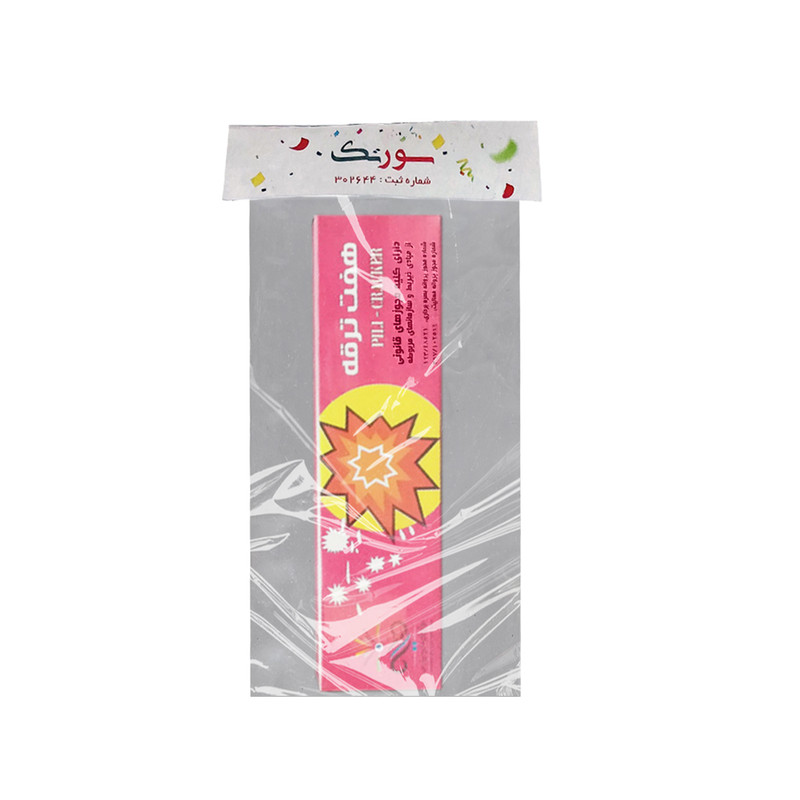 هفت ترقه سورتک 50 عددی ، یکی از انواع وسایل آتش بازی می باشد که در مراسمات مختلف استفاده می شود . با توجه به وزن چاشنی این محصول مدت زمان سوخت دود 3 ثانیه می باشد . این محصول ساخت ایران است .