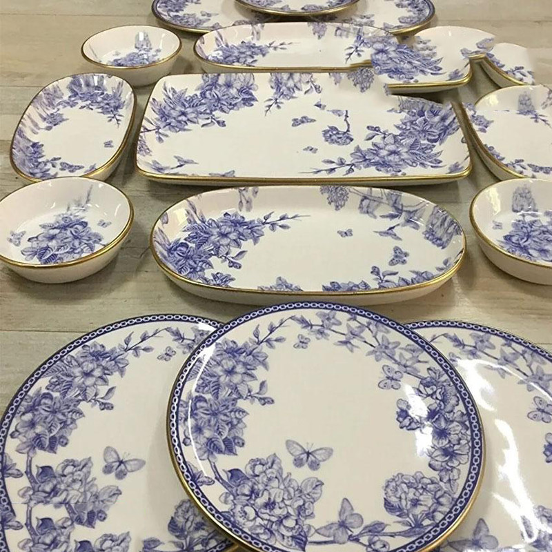 مجموعه بسیار نفیس 14+1 پارچه صبحانه خوری گونول محصول کشور ترکیه بوده و شامل 6 عدد بشقاب صبحانه خوری 20 سانتی متریو 4 عدد پیاله 12 سانتی متری و 1عدد سینی (دیس)32x20 سانتی متر و یک عدد دیس بیضی 21x12 سانتی متر و 2عدد دیس بیضی 27x15 سانتی متر میباشد