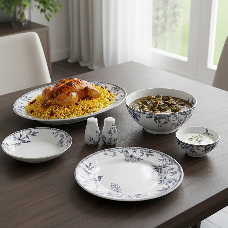 جنس چینی استخوانی با درخشش طبیعی، ظاهری شفاف و لطیف ایجاد کرده و در عین ظرافت، مقاومت بالایی در برابر حرارت و شستوشو دارد. فرم دایرهای کلاسیک و طراحی الهامگرفته از گل لوتوس، زیباییای آرام و منظم به چیدمان میز میدهد و برای پذیراییهای روزمره یا مهمانیهای رسمی کاملاً مناسب است.