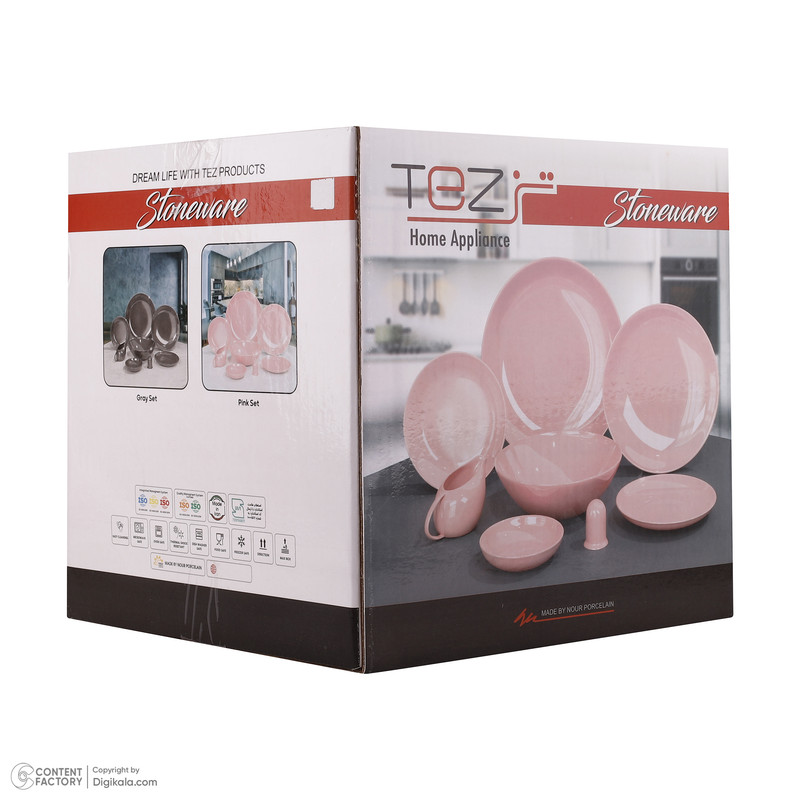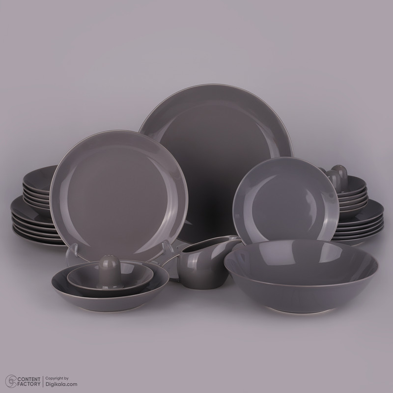 سرویس غذاخوری 31 پارچه تز مدل استون ور با طراحی زیبا و کیفیت بالایی که دارد، برای پذیرایی از 6 نفر مناسب است. این سرویس شامل 6 عدد بشقاب غذاخوری، 6 عدد بشقاب خورشخوری، 6 عدد پیشدستی، 1 عدد دیس، 1 عدد ظرف سالاد، 6 عدد پیاله، 4 عدد نمکپاش و فلفلپاش و 1 عدد ظرف سس است. این تعداد ظروف به شما امکان میدهند تمامی نیازهای سرو غذای خود را به بهترین نحو ممکن برآورده کنید. بشقابهای غذاخوری این سرویس با ابعاد 24x24x3 سانتیمتر و وزن 545 گرم، فضایی مناسب برای سرو غذاهای اصلی را فراهم میکنند. بشقابهای خورشخوری هم با ابعاد 19x19x4 سانتیمتر و وزن 348 گرم، برای سرو انواع سوپ و خورش کاملاْ ایدهآل است.