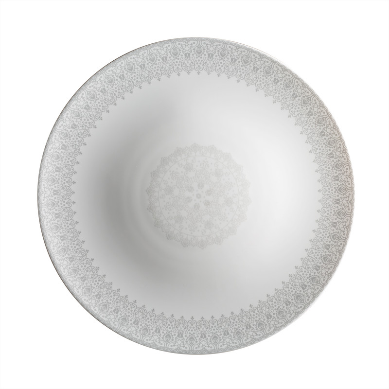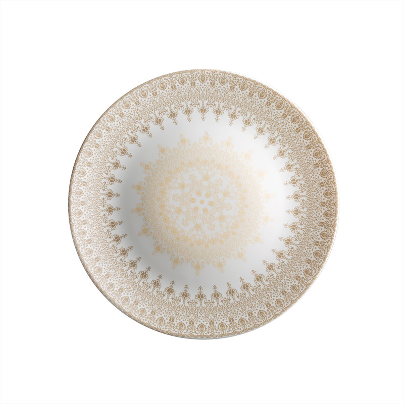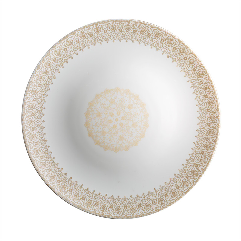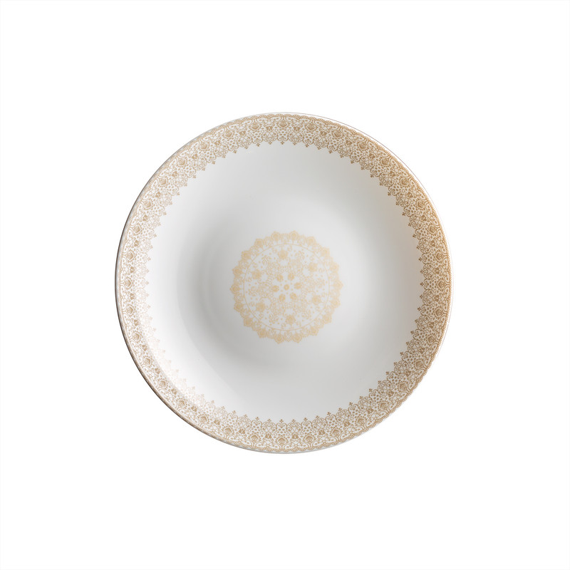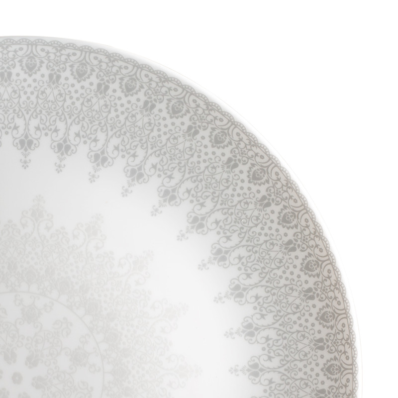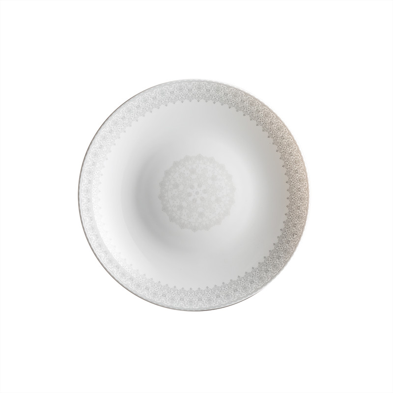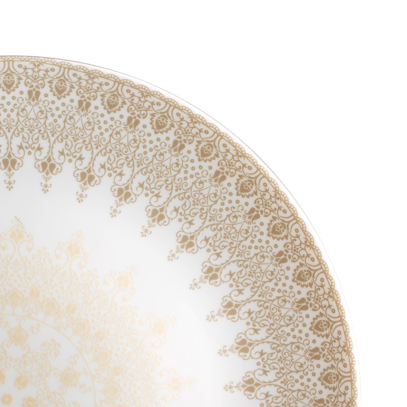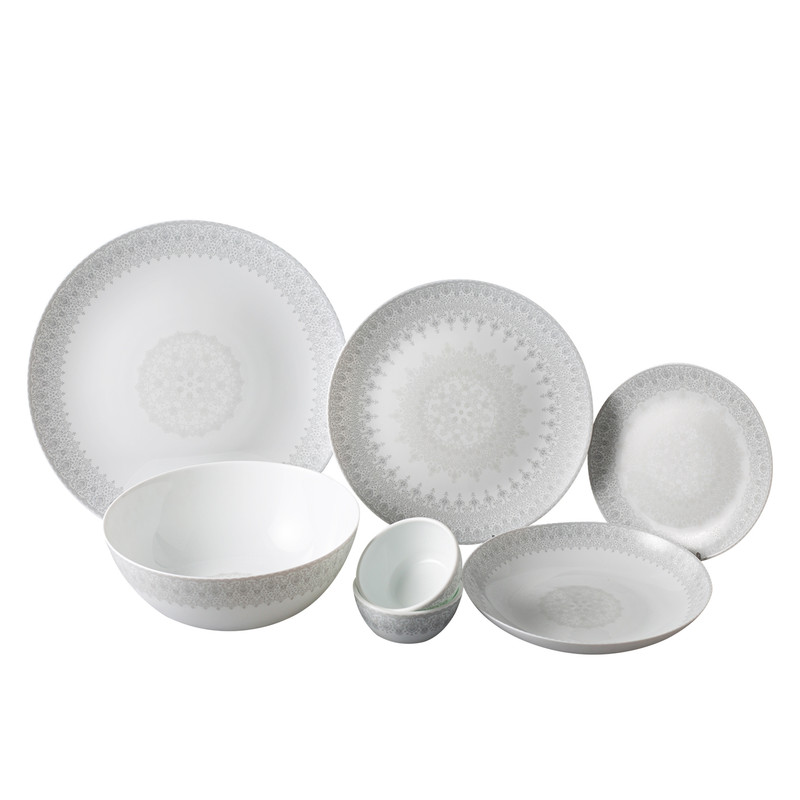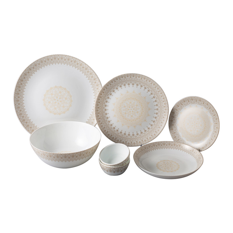 سرویس ۲۶ پارچه آیروپال طرح «نبیت» با الهام از نقوش اسلیمی و ختایی، جلوهای اصیل و در عین حال مدرن به میز شما میدهد. نقش هندسی-اسلیمیِ مرکز بشقاب با حاشیهی ظریف پیرامونی تلفیق شده تا چشم در اولین نگاه روی میز متمرکز شود و چیدمانی منظم و لوکس بسازد. بدنهی گرد کلاسیک ورژن 3 (V3) باعث میشود ظروف خوشفرمتر، کمجا و متعادل روی میز قرار بگیرند. جنس اپال (آرکوپال) نیز سفیدی شفاف، وزن کمتر نسبت به چینی سنتی و مقاومت مطلوب در برابر خطوخشها و شوکهای حرارتی متعارف را به همراه دارد؛ بنابراین «نَبیت» برای استفادهی روزمره و پذیرایی رسمی یک انتخاب هوشمندانه است.این سرویس ۶ نفره شامل ۶ بشقاب غذاخوری، ۶ بشقاب خورشتخوری، ۶ پیشدستی، ۶ کاسهی کوچک، ۱ کاسه سالاد بزرگ و ۱ دیس گرد است؛ ترکیبی کامل از صبحانههای جمعی تا شامهای مهمانی. لعاب صیقلی و یکنواخت، شستوشو را ساده میکند و لکه و بو بهسختی روی آن میماند. تمام اقلام برای ماشین ظرفشویی مناسباند و میتوان از آنها در مایکروویو نیز استفاده کرد (مشروط به نبود تزئینات فلزی)
