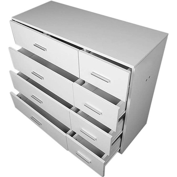 دراور هشت کشو مدل IKE4088 جنس روکش ملامینه ضد خش میباشد و کشو ها با ریل ساچمه ای با کیفیت دستگیره فلزی مستحکم در سه رنگ گردویی ، سفید و آنتیک طلایی زیبا و شکیل میباشد.