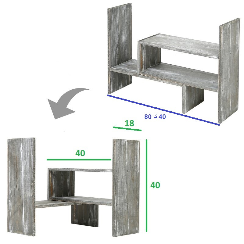 طول این کتابخانه رومیزی از 40 سانت تا 80 سانت متحرک بوده و با توجه به نیاز کوچک و بزرگ کنید.