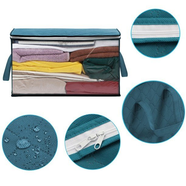 باکس لباس مادام کوکو از جنس پارچه پلی استر 4 لایه ضد آب ضخیم و طلق شفاف ساخته شده و طول آن 60 عرض 39 و ارتفاع 33 سانتیمتر است که میتوانید انواع رختخواب , لباس و پتو را در آن جای دهید. همچنین دارای درب زیپ دار جهت جلوگیری از نفوذ گرد وغبار و حشرات می باشد که قابلیت شستشو با دست و ماشین لباسشویی را دارد.