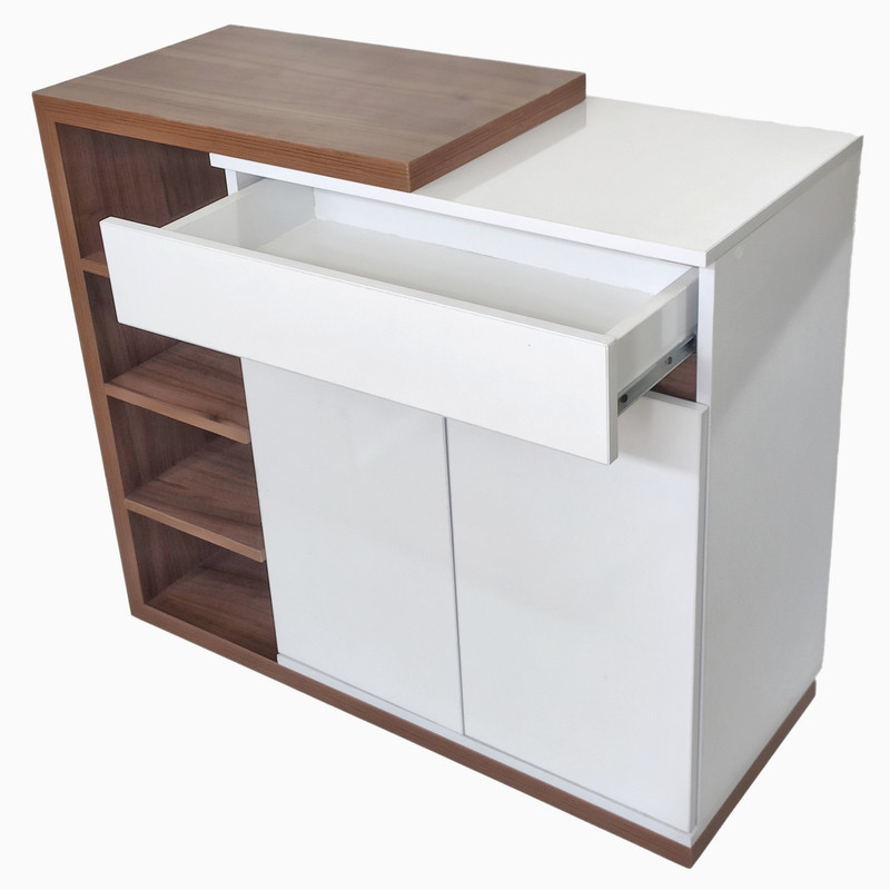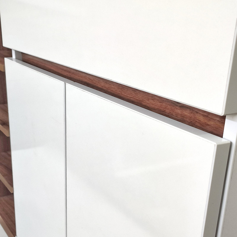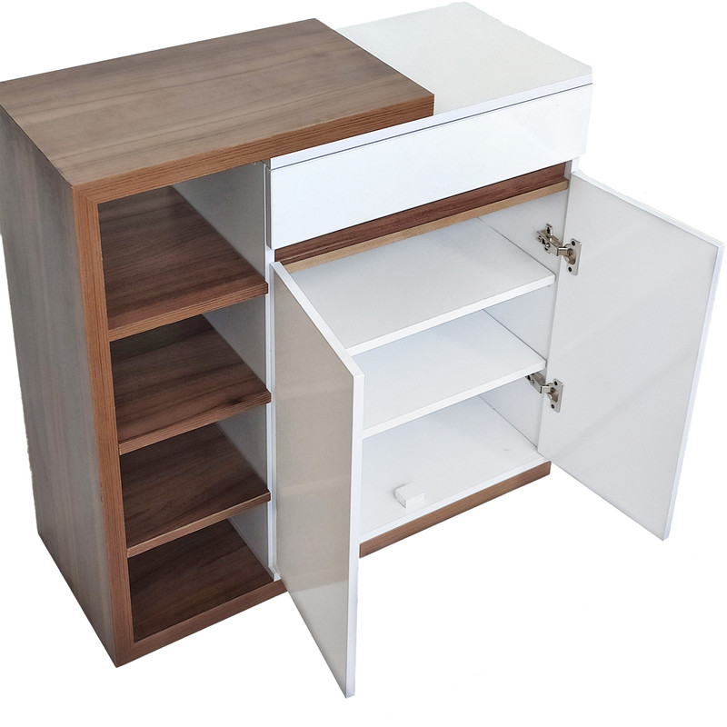 جاکفشی مدل دو رنگ دستگیره مخفی از MDF پاک چوب درجه یک تولید شده و از یراق الات با کیفیت در کمد و کشو آن استفاده شده است .