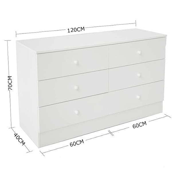 دراور شش کشو مدل IKE367 جنس روکش ملامینه ضد خش میباشد و کشو ها با ریل ساچمه ای با کیفیت دستگیره فلزی مستحکم در سه رنگ گردویی ، سفید و آنتیک طلایی زیبا و شکیل میباشد.