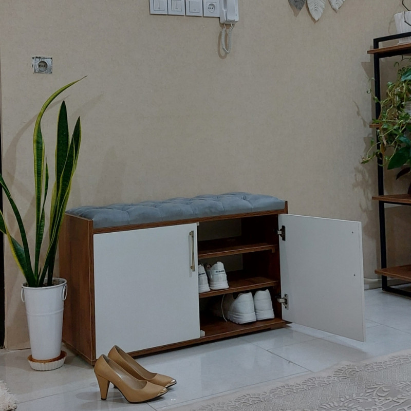 جاکفشی مدل آلما طراحی شده برای 12 جفت کفش همراه با نشیمن با رویه کوبی مبلی چستر(لمسه) امکان این را فراهم میکند تا در زمان استفاده از هر گونه کفش از نشیمن این مدل به راحتی استفاده کنید.