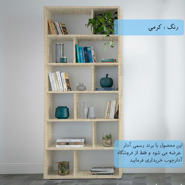 کتابخانه چوبی آدار مدل ad106 جهت نگهداری کتاب، لوازم دکوری، لوازم تحریر، بهداشتی و ... مناسب است و در چهار رنگ سفید، قهوه ای روشن، قهوه ای تیره و کرمی عرضه می شود که توسط خریدار گرامی قابل انتخاب می باشد.