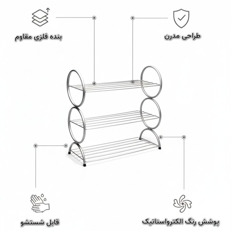 این جاکفشی با طراحی کمجا (Space-Saving Design) و ساختار مستحکم فلزی (Durable Metal)، هم ظاهری شیک دارد و هم فضای قابل توجهی برای نگهداری انواع کفش فراهم میکند.