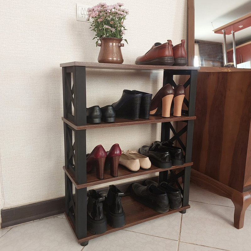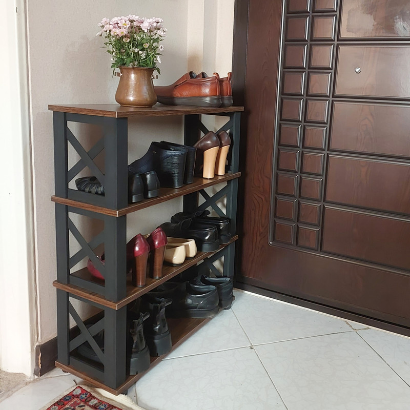 طراحی زیبا، استحکام و سادگی از مزایای این جاکفشی است. این جاکفشی از جنس ملامینه است که لبه های آن پی وی سی شده است. امکان قرار دادن 12 جفت کفش در آن وجود دارد. پایه های ضربدری این جاکفشی از ام دی اف خام هشت میلیمتری ساخته شده است که با رنگ اکریلیک مشکی رنگ آمیزی شده است. پایه های پلاستیکی کف آن قابلیت تراز کردن جاکفشی را می دهد. این جاکفشی با 16 پیچ به راحتی مونتاژ می شود. لینک فیلم آموزش مونتاژ در بسته بندی قرار دارد.
