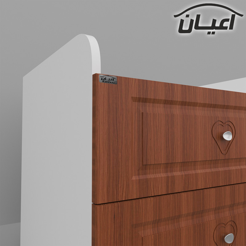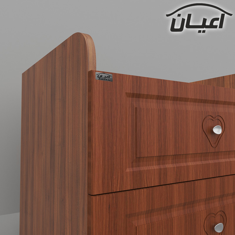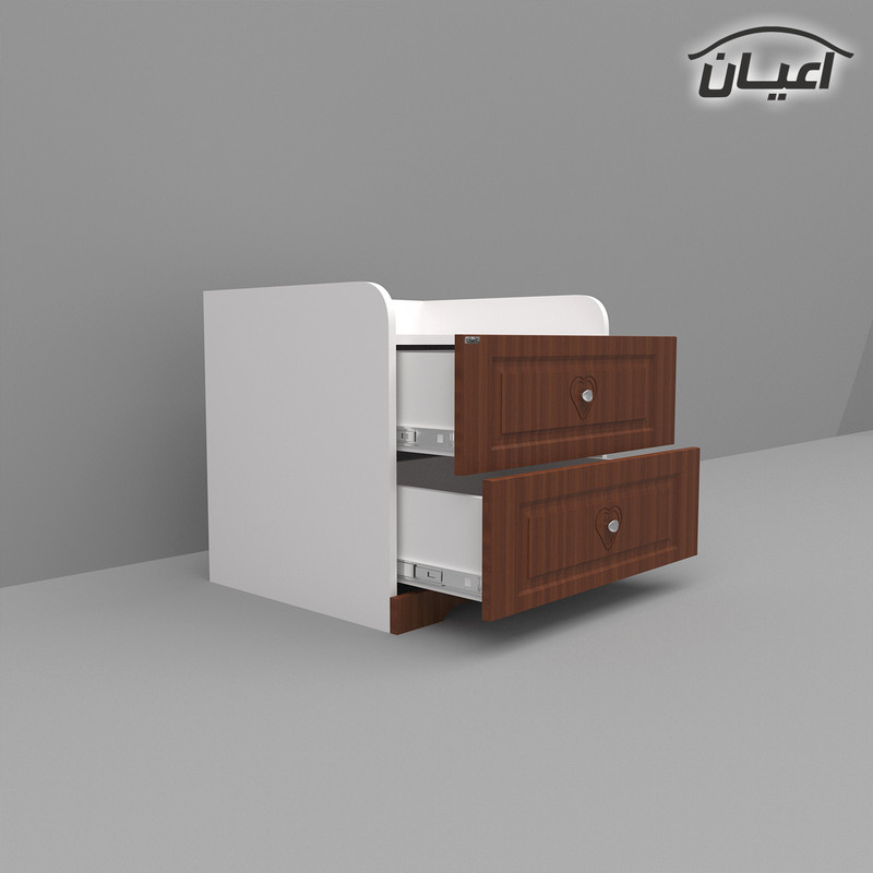 میز پاتختی اعیان طرح فانتزی-جنس بدنه نئوپان ملامینه شرکتی و درب ها ام دی اف با روکش PVC (وکیوم) است.دارای دو کشو با ریل ساچمه ای سه تکه - دستگیره تک پیچ استیل بوده و طرح قلب به صورت حکاکی بر روی درب کشوها وجود دارد - این کار به صورت مجموعه کامل در سرویس خواب اعیان مدل FH474 نیز در کنار تختخواب و کمد و دراور ست وجود دارد که میتواند برای نوجوان و بزرگسال به ویژه دختران انتخابی شیک و فانتزی باشد.