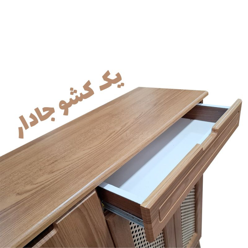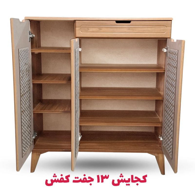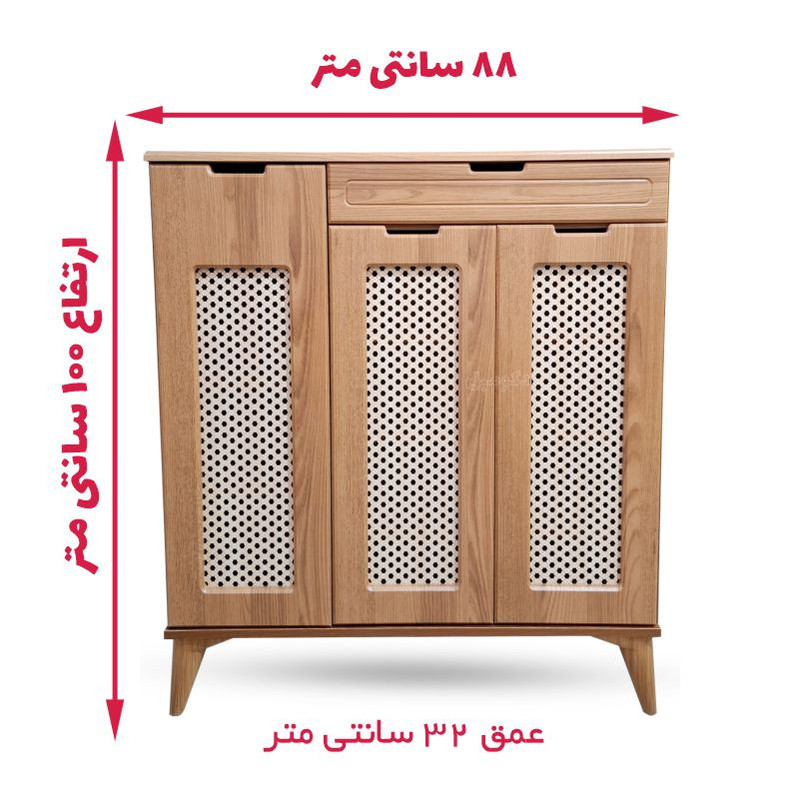جاکفشی دکومبل مدل حصیری 225 : عرض 88 سانتی متر – ارتفاع 100 سانتی متر و عمق 32 سانتی است داخل این جا کفشی چوبی جدید مجموعه 4 طبقه عریض وجود داره که در هر طبقه سه جفت بزرگ ظرفیت دارد و مجموعا گنجایش 13 جفت کفش را دارا می باشد.