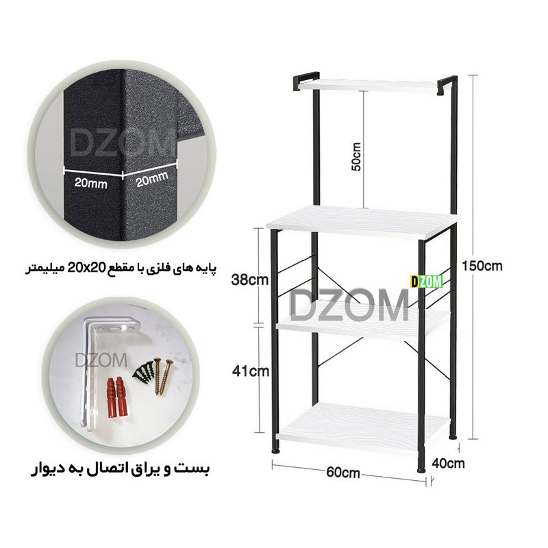 کنسول دیزم DZom مدل CNL_F100_60_W محصولی سبک، شیک و در عین حال جذاب و کارآمد از سری تولیدات دیزم میباشد. مشتری گرامی توجه نمایید محصولات برند دیزم (شماره ثبت 414013 اداره ثبت علائم تجاری) با کیفیت و بسته بندی اصلی تنها توسط فروشنده رسمی دیزم در دیجی کالا عرضه می گردد، لطفا از خرید کالای تقلبی از سایر فروشندگان خودداری فرمایید. این محصول از پایه های فلزی با مقطع 20x20 میلیمتر و رنگ رویه الکترواستاتیک با ماندگاری و دوام بالا ساخته شده است. همچنین پایه های پیچی، قابلیت تنظیم نسبت به سطح زمین را دارد تا بهترین تراز جهت جلوگیری از تکان خوردن را ایجاد نماید. صفحه میز از جنس MDF درجه یک برجسته طرح چوب به رنگ سفید می باشد. این محصول با طول 60cm، عرض 40cm و ارتفاع 150cm عرضه می شود. به این نکته توجه شود که تنوع رنگ انتخابی کالا تنها مربوط به رنگ پایه های فلزی میباشد و محصول به صورت کاملا مونتاژ شده و آماده استفاده برای مشتریان ارسال می گردد. توصیه میشود جهت حفظ ایمنی و ثبات بیشتر، محصول در یک یا دو نقطه به دیوار پیچ گرد.(یراق اتصال داخل بسته بندی موجود است).