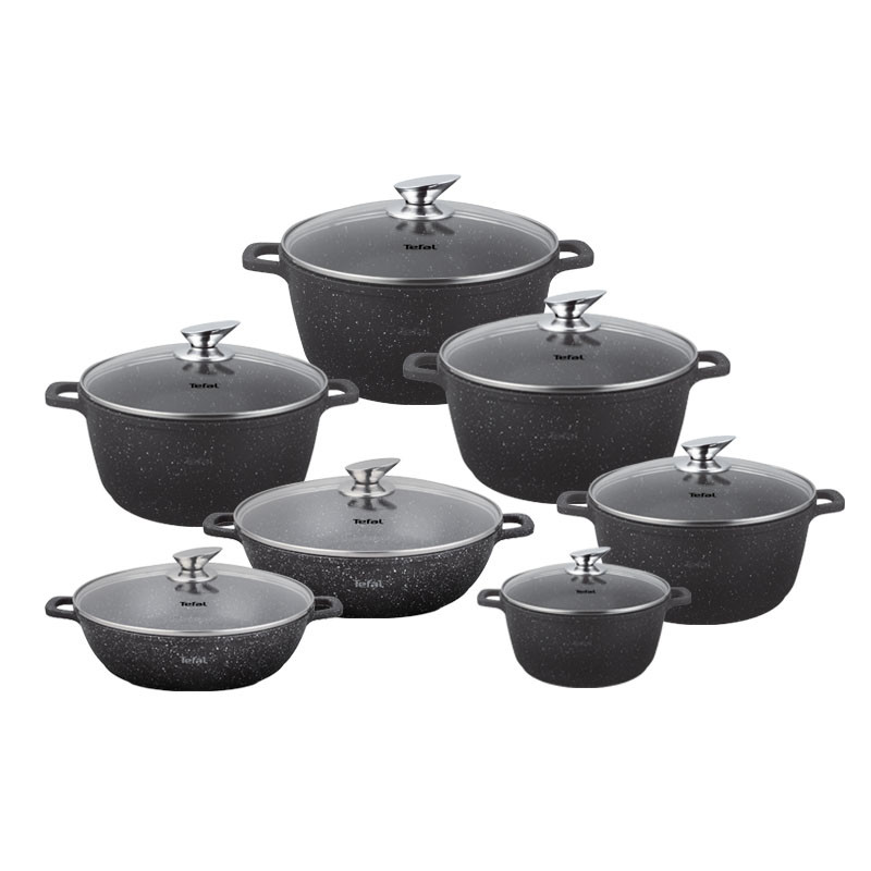 سرویس پخت و پز 14 پارچه ی تفال، انتخابی مناسب برای هر آشپزخانهای است که به کیفیت و زیبایی اهمیت میدهد. این سرویس شامل تابه سایز 24 و 28 و قابلمههای متنوعی است که در سایزهای 20، 24 و 28 و 32، 36 ارائه میشوند. جنس بدنه این محصولات از سوپر نانو گرانیت طبیعی ساخته شده. درپوشهای این سرویس از ترکیب شیشه و استیل ساخته شدهاند که علاوه بر مقاومت بالا، امکان مشاهده فرآیند پخت را فراهم میکنند. دستههای این ظروف نیز از ساختار بدنه ساخته شدهاند که استحکام و دوام آنها را تضمین میکند.