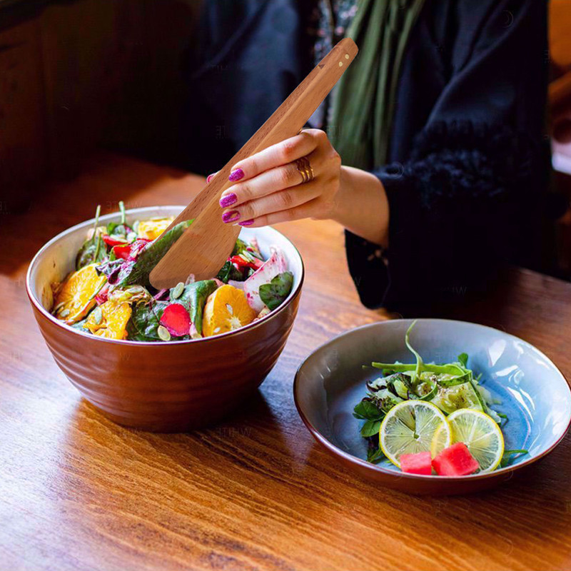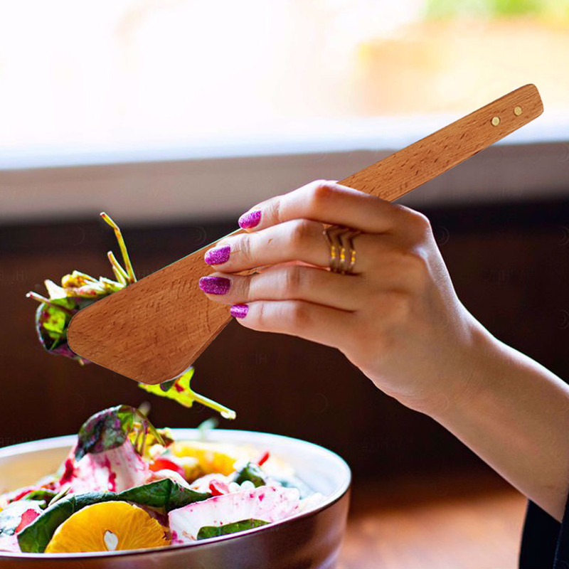 انبر سالاد خوری چوبی ، محصولی جدید با طراحی کاربردی و البته کمی متفاوت نسبت به نمونه های معمول می باشد . این انبر از جنس چوب راش مرغوب و باکیفیت تولید شده که دارای انعطاف پذیری مناسب برای استفاده ساده تر درون دست است ، به طوری که نیازی به فشار زیاد برای جمع شدن دهانه نبوده و البته مقاومت بیشتری در برابر شکستگی احتمالی پیدا کرده . انبر سالاد چوبی دارای سری با طراحی متفاوت برای سهولت در برداشتن مواد غذایی از داخل ظرف می باشد ، بنابراین علاوه بر سالاد برای سرو غذاهای مختلف بر روی میز غذا نیز از آن می توانید بهره ببرید . زیبایی ظاهری در عین سادگی را به دیگر خصوصیات محصول اضافه کنید و از آن برای تکمیل سرویس چوبی آشپزخانه خود بهره ببرید .