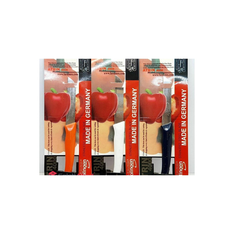 چاقوآشپزخانه زولینگن مدل آترین 4000 ساخت کشور آلمان دارای برندگی قابل قبول جهت بریدن انواع میوه و سبزی است این کالا قابل شستشو با ماشین ظرفشویی هم هست اما باید از مواد شیمایی و سفید کننده برای شستن استفاده نکرد.دارای دسته اکلیلی میباشد.