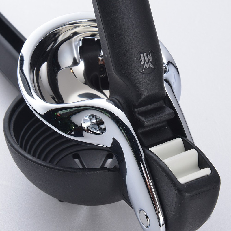 برای طعمدارکردن غذا آبلیمو یکی از چاشنیهایی است که در خانه مرتب مورد استفاده قرار میگیرد . بهتر است این چاشنی خوشطعم و عطر را کاملا تازه به غذا اضافه کنیم . برای این کار آبلیموگیری دستی دبلیو ام اف محصول کشور آلمان که با کیفیت ساخت عالی و بی نظیر ، تغییری در طعم غذا ایجاد نکند . این آبلیموگیر از جنس بسیار محکم و بادوام ساخته شده و برای گرفتن آب لیمو و نارنج گزینه مناسبی است . این محصول فشار زیادی به لیمو وارد کرده و تا آخرین قطره را خارج میکند. کفی این آبلیموگیر مانع از خارجشدن دانههای لیمو و ورود آنها به غذا میشود . طراحی ارگونومیک این محصول باعث میشود تا بهآسانی در دست جای گیرد و با فشار کمی از طراف دست ، دستهها بهخوبی روی هم قرار گیرند . بدنه این آبلیموگیر از کیفیت بالایی برخوردار است و در صورت تماس با آبلیمو و حتی آب نارنج ، دچار واکنش نشده و طعم آن را تغییر نمیدهد ؛ همچنین باعث تغییر مزه غذا نخواهد شد .